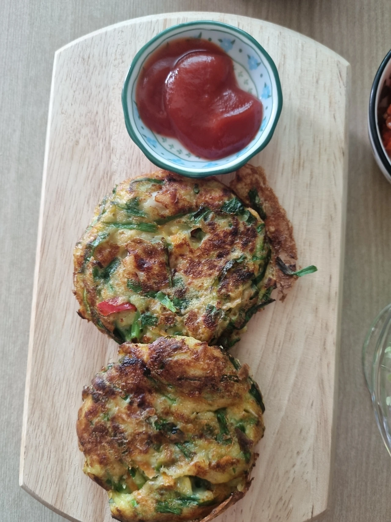 오징어새우전은 바삭하면서도 탱글한 해산물 맛이 톡톡.