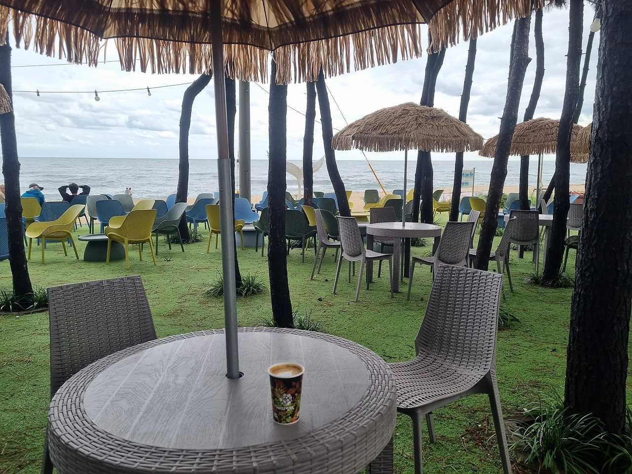 체크아웃 후에는 계획해 두었던 카페로 바로 향했다. 몇 백 평은 되어 보이는 넓은 카페 안, 대부분은 친구나 가족 단위로 앉아 있었고 혼자 온 사람은 나뿐이었다. 그렇지만 어색하기보다는 오히려 마음이 가벼웠다. 창가에 앉아 커피를 마시며 파도와 하늘을 오래 바라보니 혼자만의 시간이 오히려 선물처럼 느껴졌다.