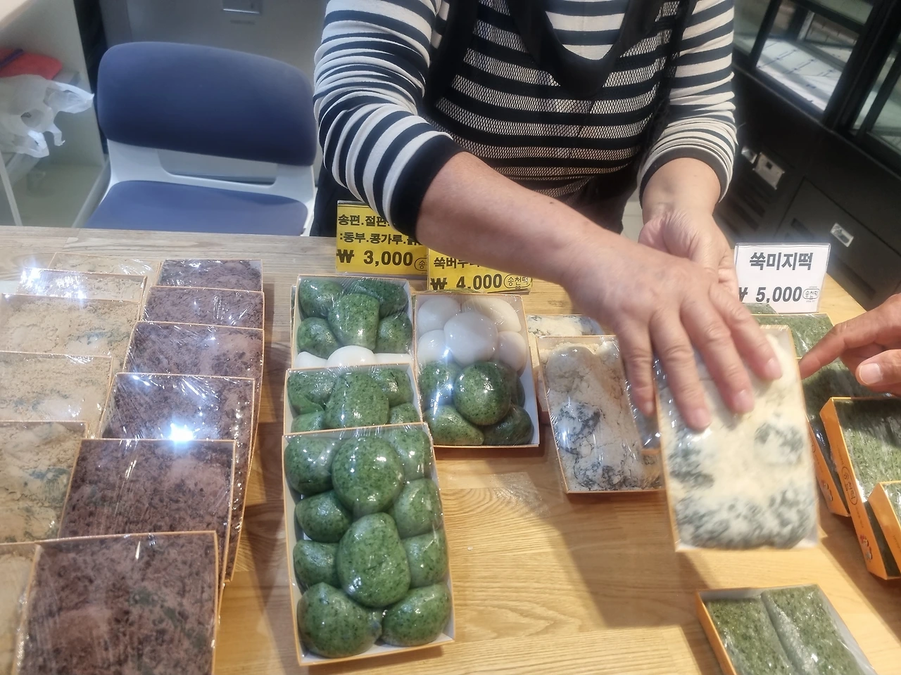그리고 이번 여행의 마지막 코스, 양양 송천 떡마을. 도착하자마자 쑥떡, 인절미, 송편 등 다양한 떡을 챙겼다. 떡뿐 아니라 강원도에서만 만날 수 있는 산나물과 제철 먹거리까지 담아, 집으로 돌아오는 길에 언니들에게 선물로 나눠주었다.
