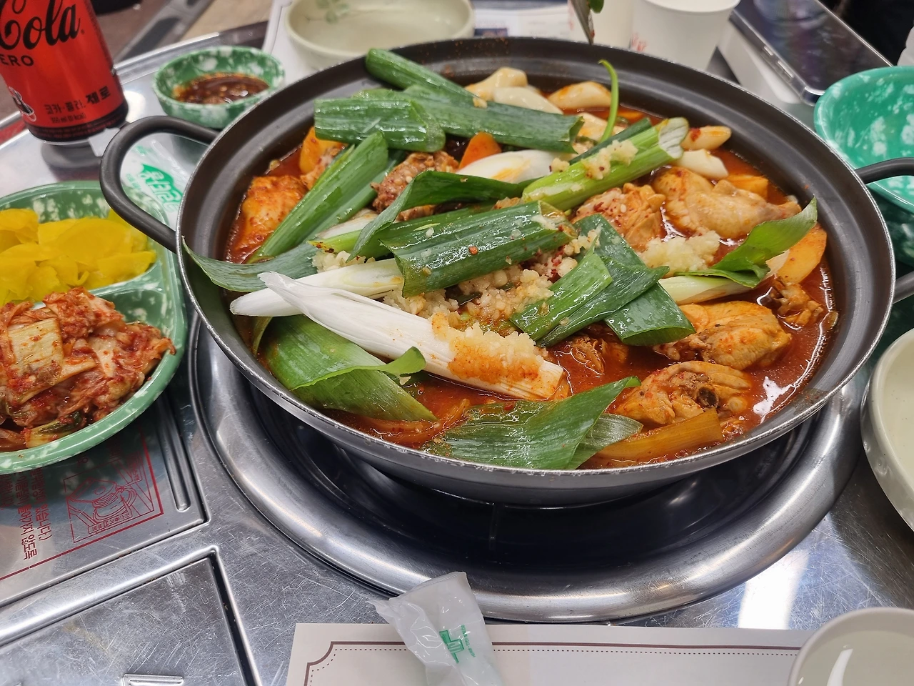 시장 안 닭볶음탕 집에 앉아 얼큰한 국물을 앞에 두니, 오늘 하루가 잘 정리되는 듯했다. 매콤한 냄새와 함께 들려오는 소란스러운 대화 소리도 그저 배경일뿐, 우리에겐 든든한 저녁식사였다.