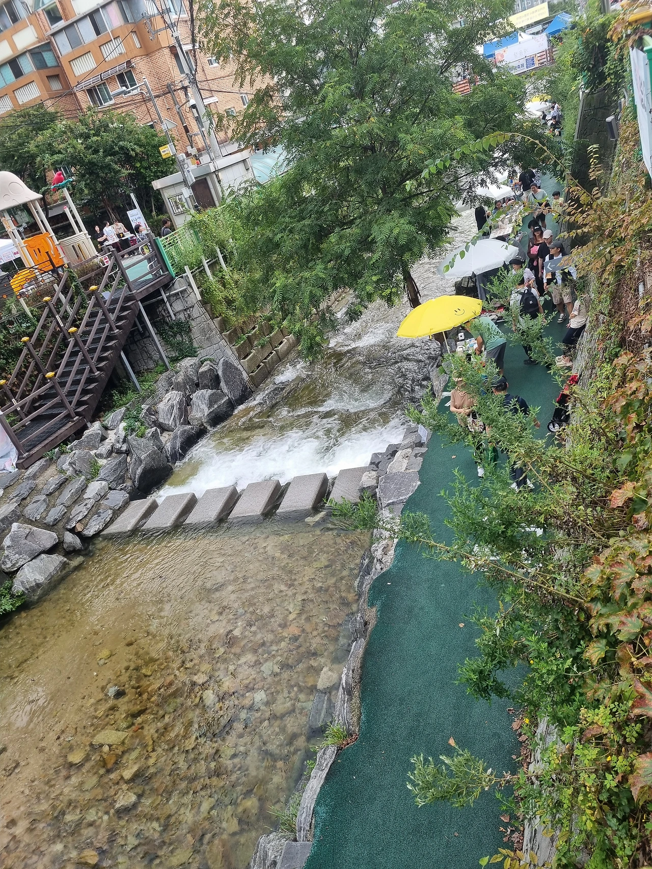 정릉천에 도착하자마자 작은 식당에서 손칼국수로 배를 채웠다. 시원한 국물 한 숟갈이 들어가자 걷기 시작할 힘이 금세 돌아왔다. 창가 너머 흐르는 물소리가 배경음처럼 들려서, 출발 전의 긴장도 사라졌다.