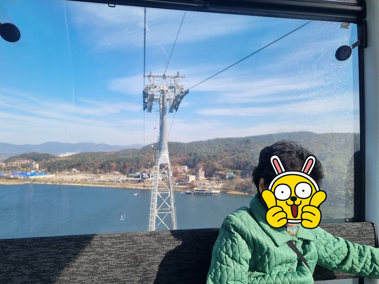 케이블카에서는 약간 긴장한 듯 손잡이를 잡으면서도