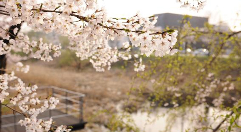 봄이 되면 출판단지에는 벚꽃이 흐드러지게 핀다. 벚꽃뿐만 아니라 곳곳으로 철쭉과 개나리, 이름 모를 온갖 꽃들이 변화를 알리기 시작한다. 자연과 어우러진 곳이라 계절을 맞이하는 변화가 꽤나 극적이다. 메마른 하천과 샛강에는 물이 차오르고, 출판단지를 자유롭게 날아다니던 기러기도 어느새 사라졌다. 나무 위 사방으로 뻗은 그물 사이를 푸른 잎과 꽃이 메운다. 매섭던 바람 역시 기세를 잃고 산들거린다.