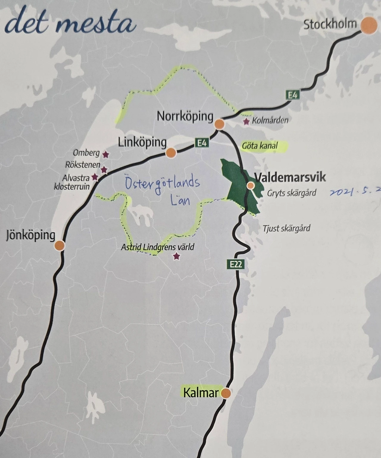 "그래~ 우리가 전에 들렀던, 예테보리가 주도(state capital)인, '베스트라 예탈란드(Västra Götaland)'주 있잖아? 이는 서쪽의(Västra) 고트족의(Göta) 땅(land)이란 뜻인데, '외스테르예틀란드(Östergötland)'주는 '동쪽의(Öster)' 고트족의 땅이란 뜻이야.
