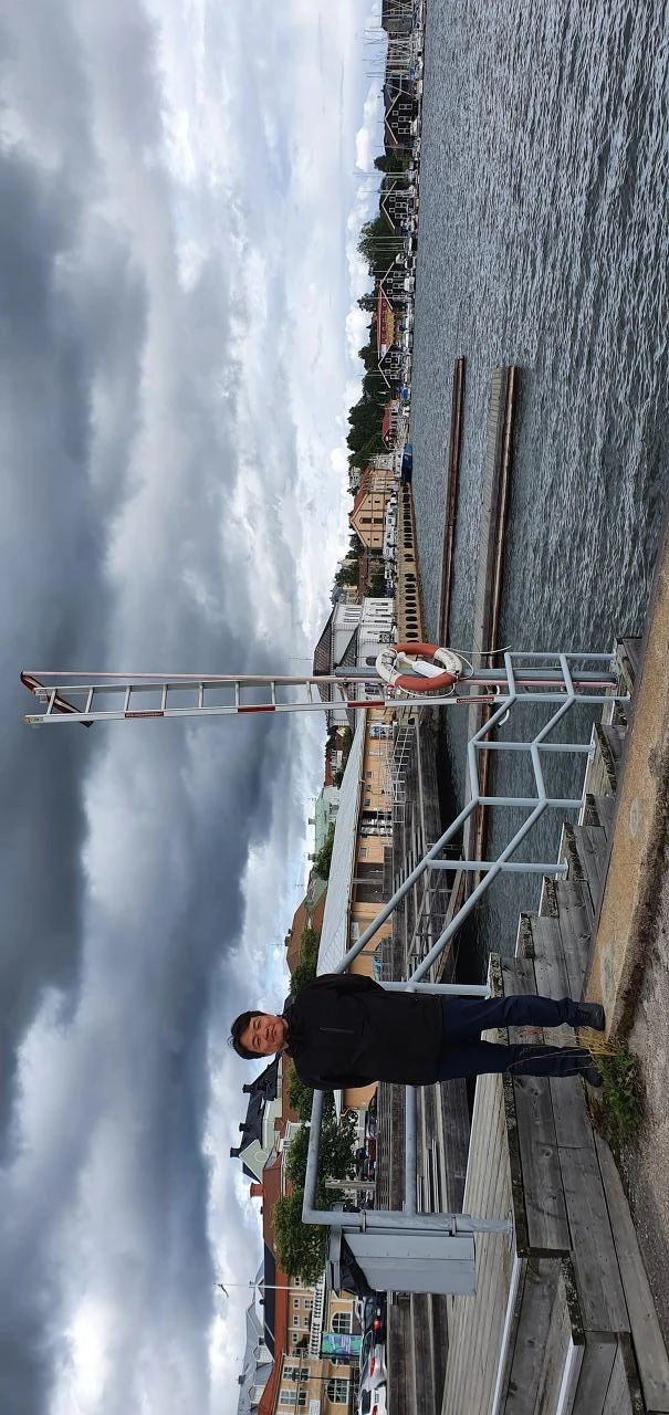 후딕스발(Hudiksvall) 항구 앞에서, 그날따라 바람이 많이 불었다.