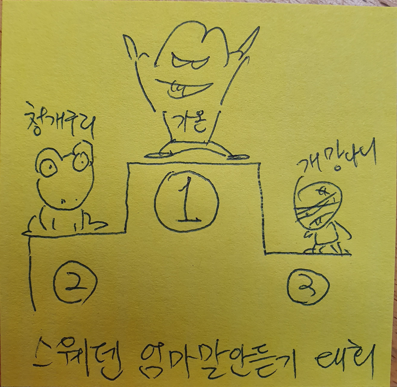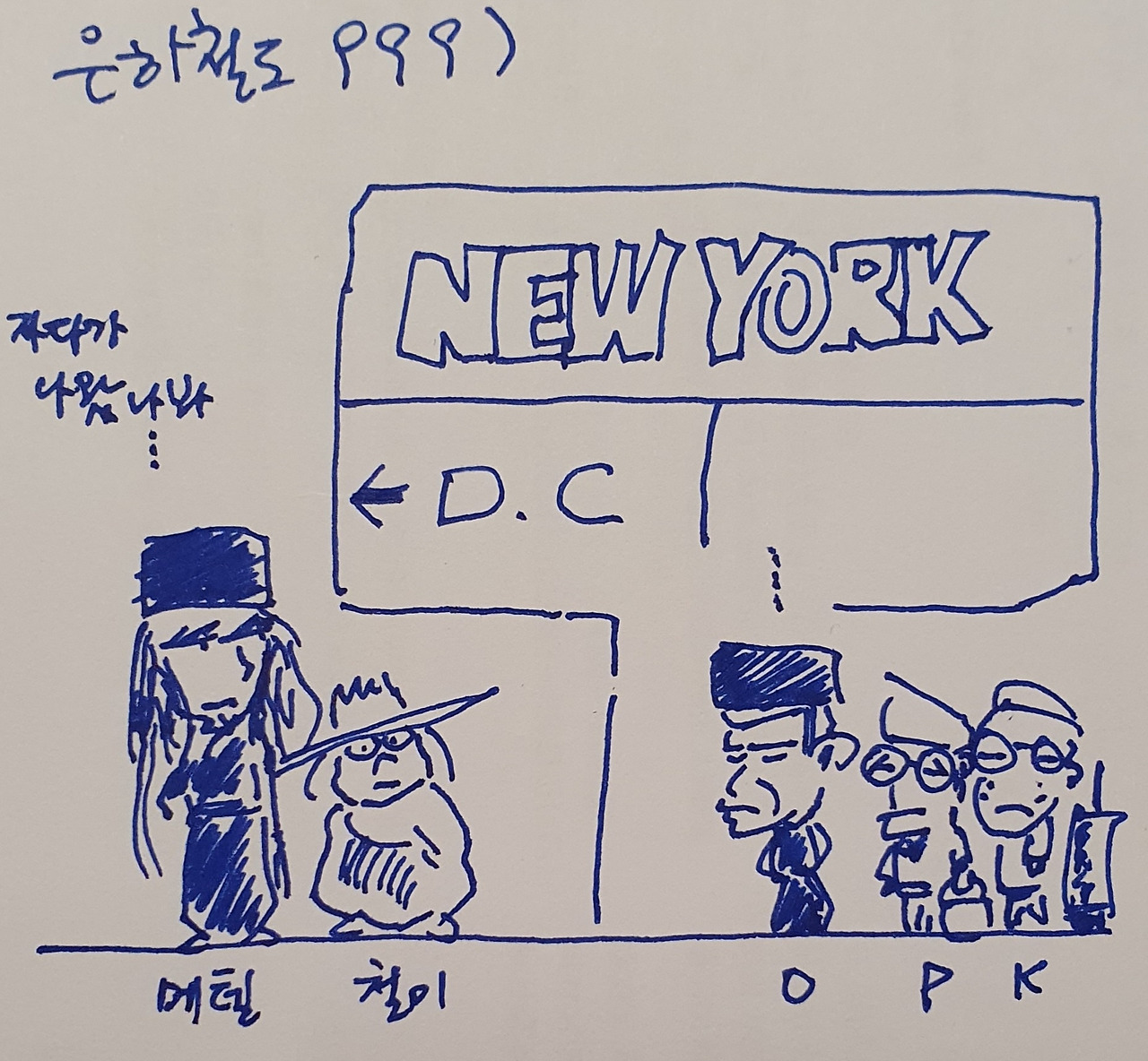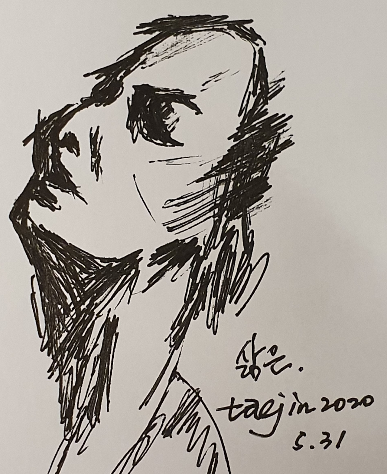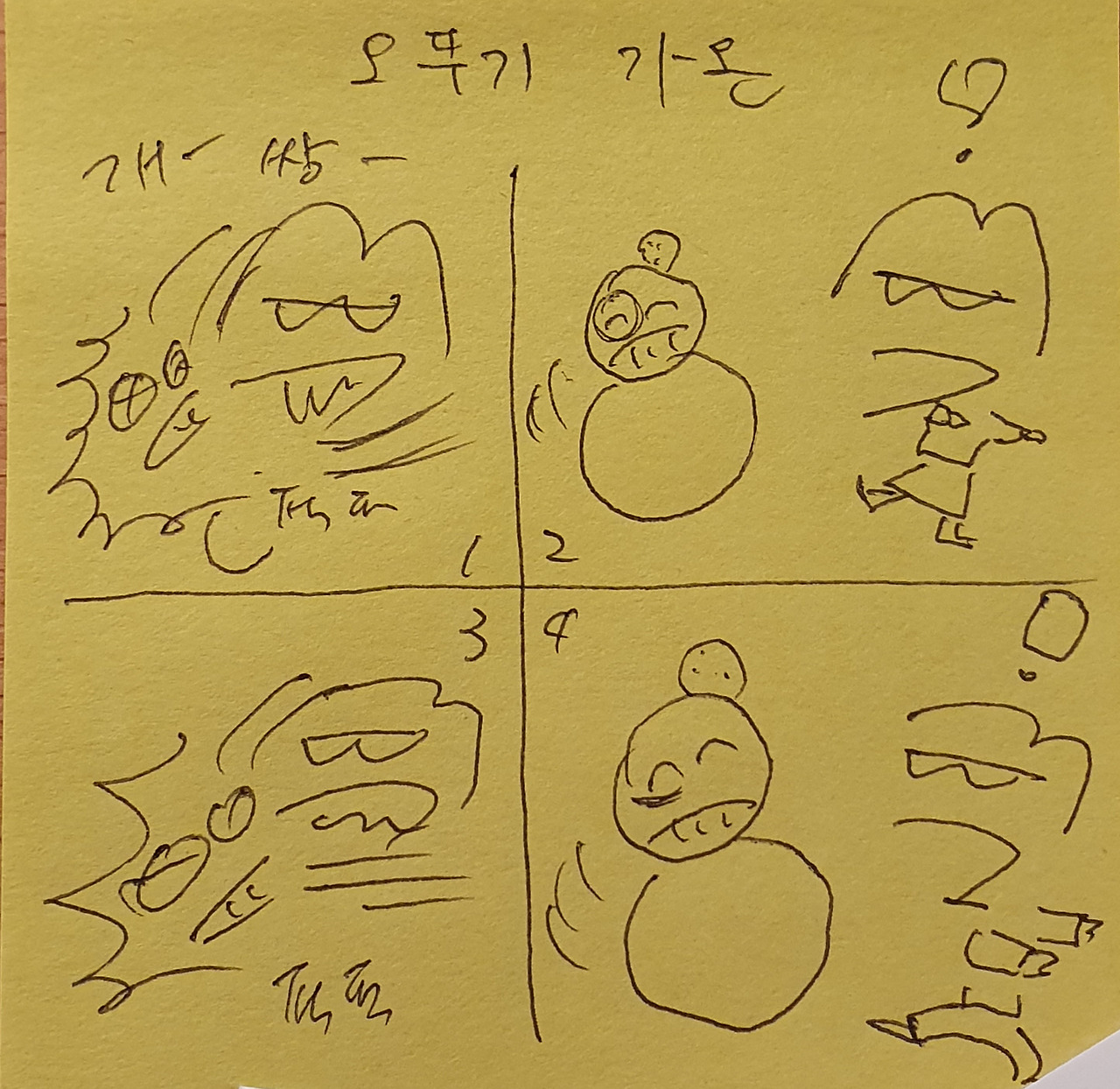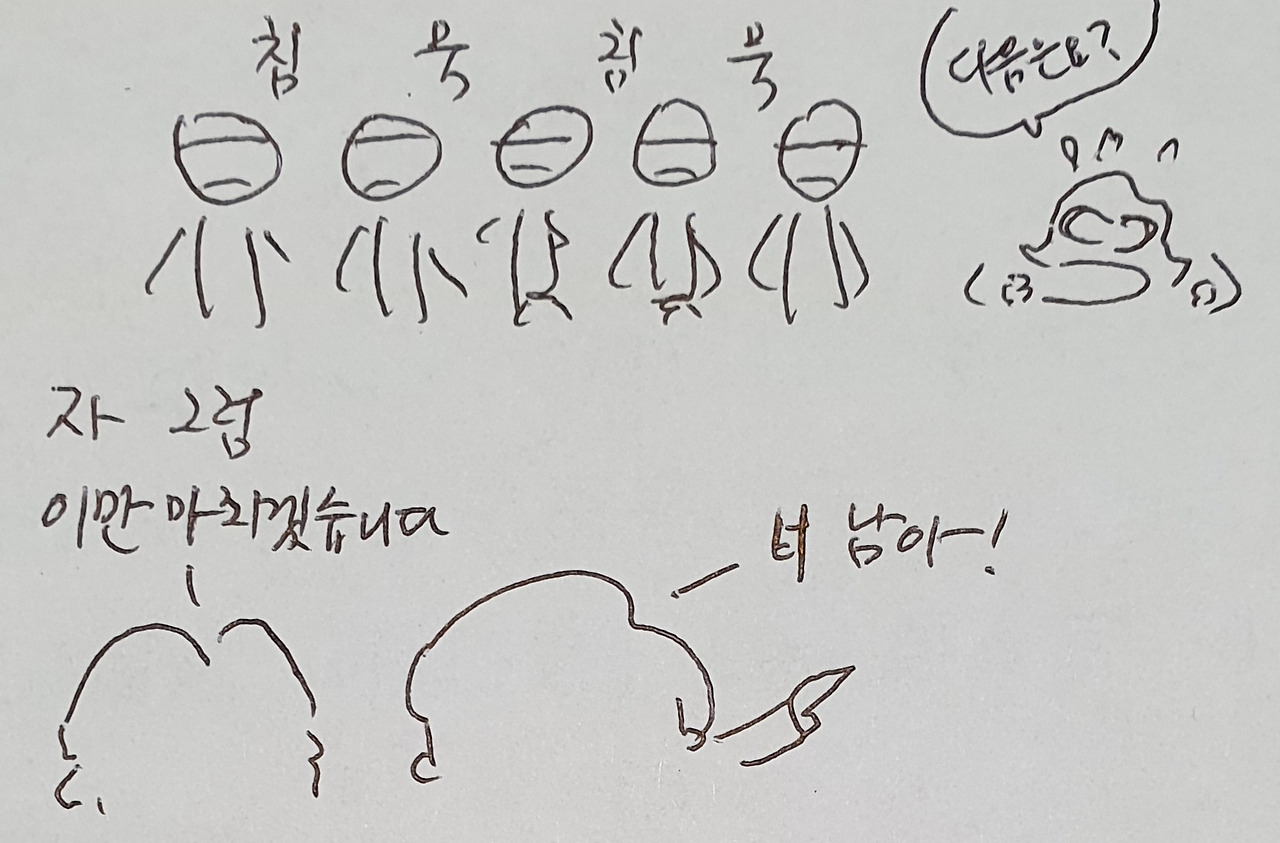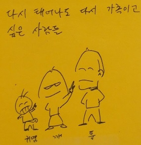 맨 마지막 그림은 맨날 나와 아내가 혼내도 꾿꾿하게 벼텨내는 아들이 신기해서 그린 것