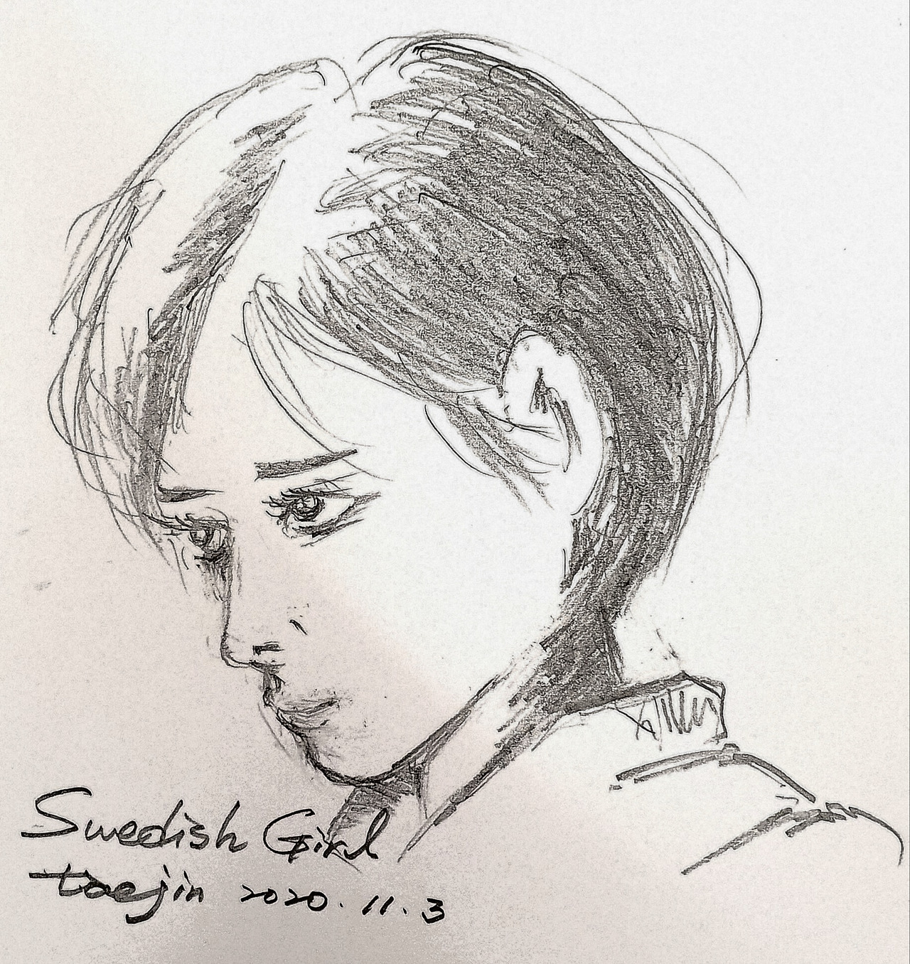 한번은 출장 도중 공항에서 환승을 기다리며 거울에 비친 내 모습을 스마트폰에 그려보고, 그 그림을 비행기 속에서 한참을 본 적이 있다. 이게 내 얼굴이구나... 내가 언제 이렇게 어른이 되었지... 하는 생각에 여러가지 생각이 들었다. 나를 그리라고 하면 아이를 그렸던 내가, 어느새 넥타이를 매고 입가가 쳐진 어른을 내 얼굴로 그렸다는 생각이 내내 지워지지 않았다.