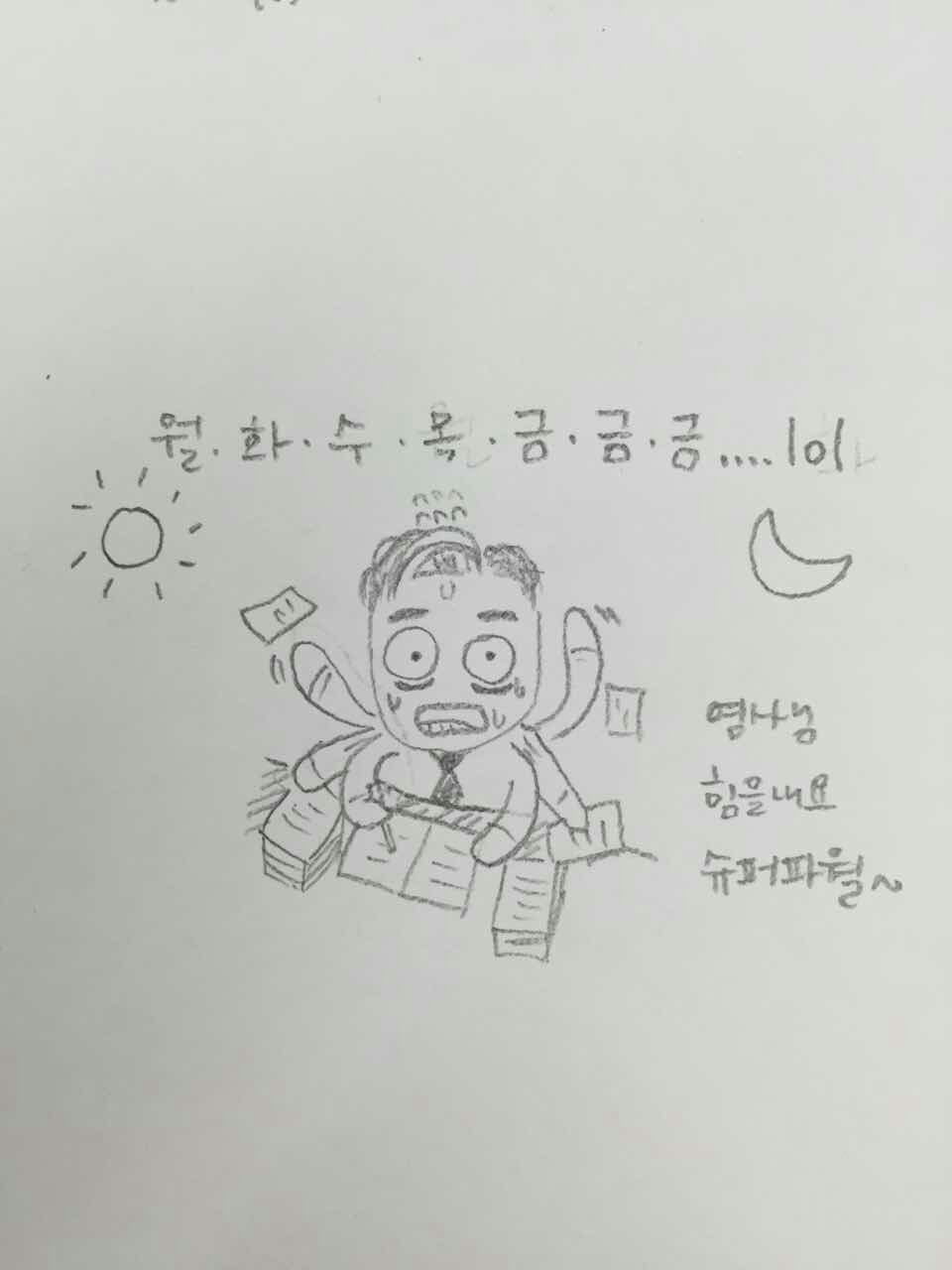 그때는 참 일이 많은 시절이었지만, 간혹 이런 응원 만화메시지를 받는 것이 박카스 100병을 먹는 것 같았다.