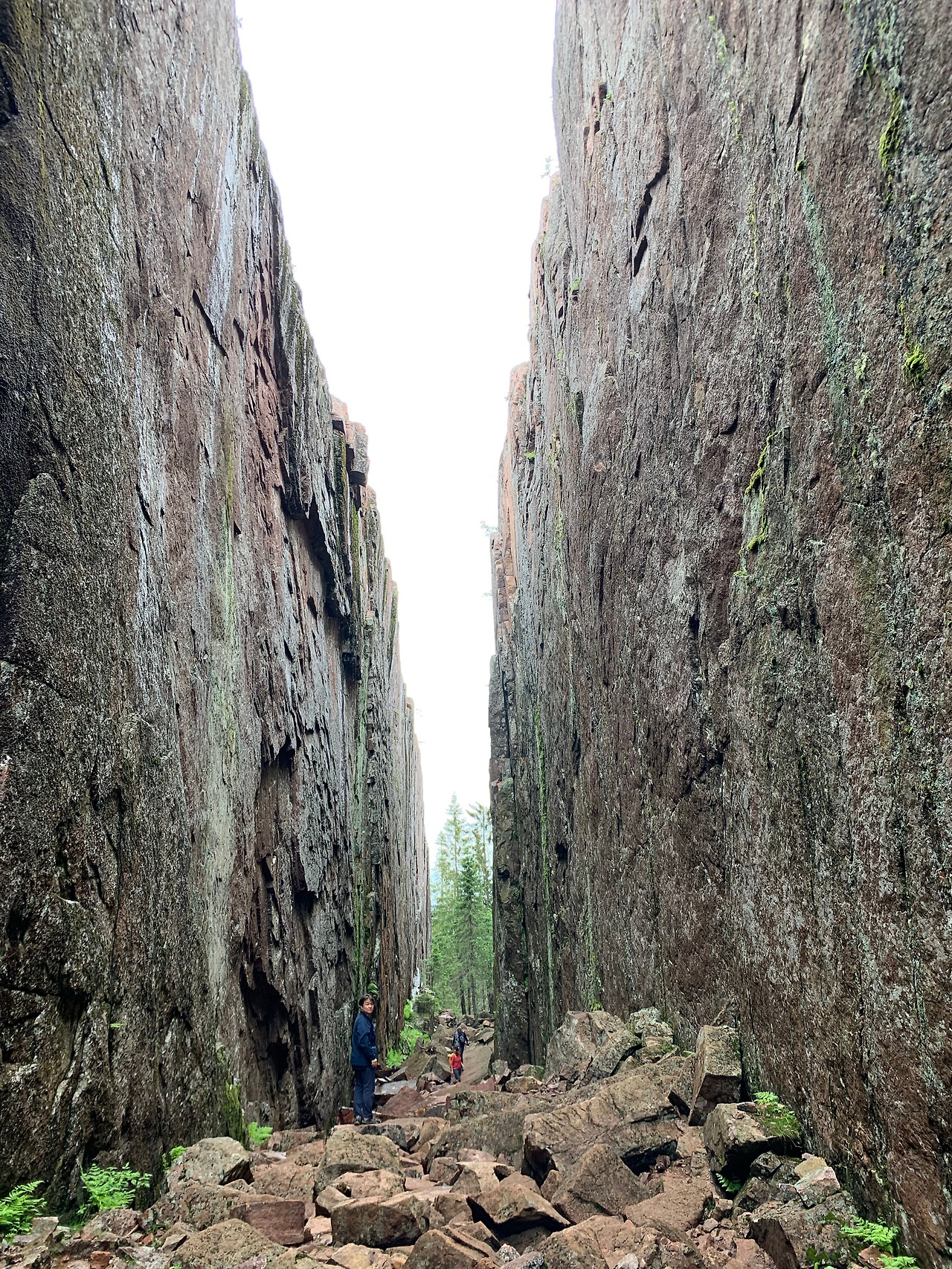 Slåttdalsskrevan은 구글링을 해봐도 뜻이 안 나오는데, 굳이 추측해 slåtter(풀을 깎다, 영어로 mow)+dal(골짜기)+skerevan(틈새)이 합쳐졌다고 보면 '깎아지른듯한 골짜기의 틈'이라고 번역할 수 있을까? 하여간 길이 200m-높이 30m-폭 7m의 이 협곡(ravine)이며, Skuleskogen 내 Slåttberget산을 양분하고 있다.