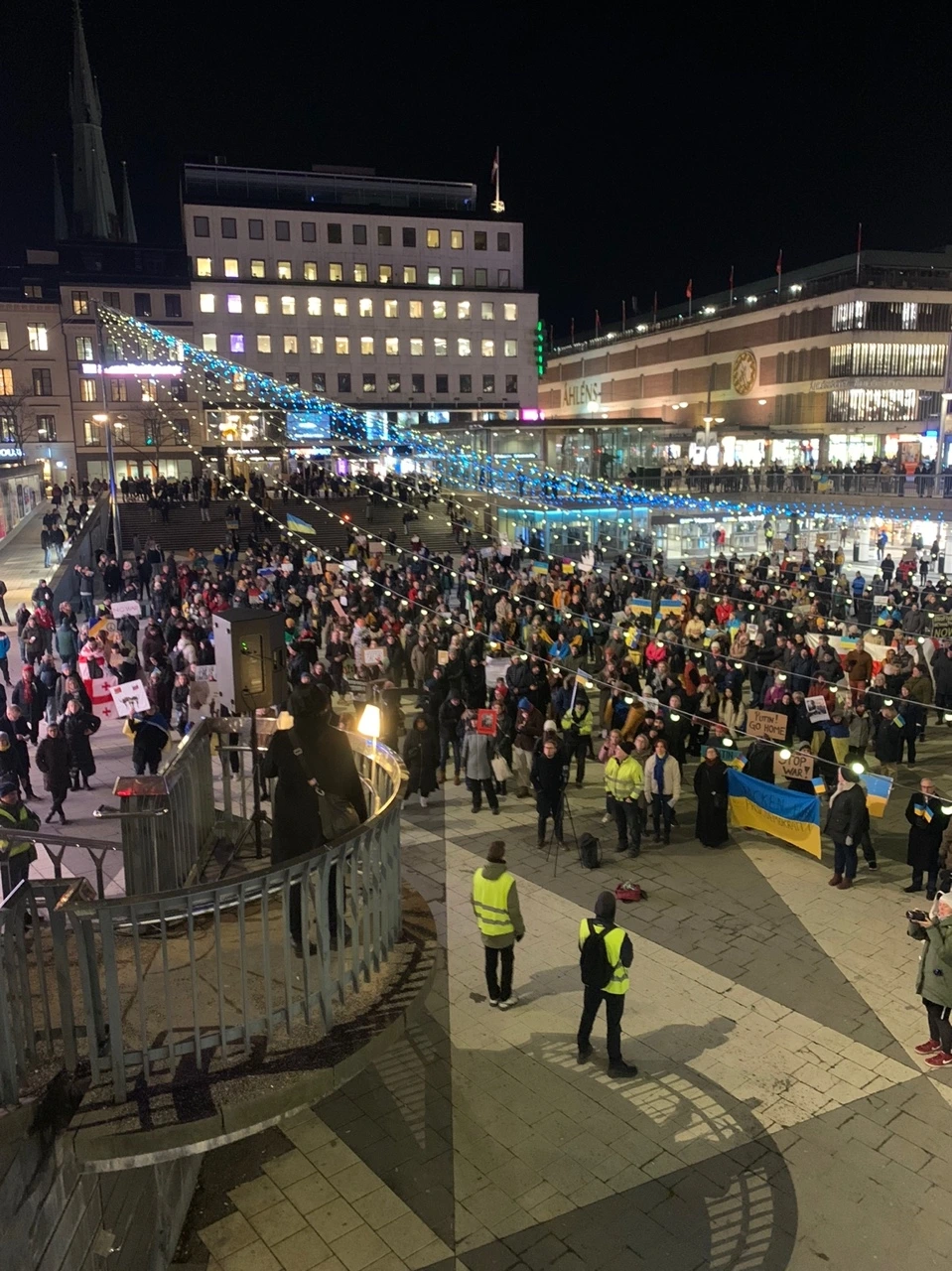 스톡홀름 중심가에서 개최된 반 우크라이나전쟁 집회(2022.3.2.)