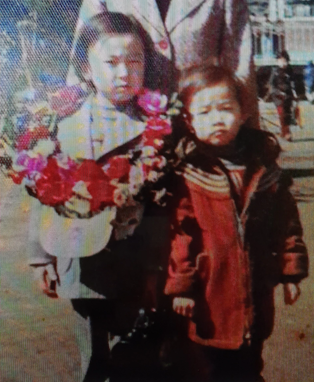 셋째 외삼촌 결혼식장에서. 감기를 달고 다녀 늘 목을 두름.