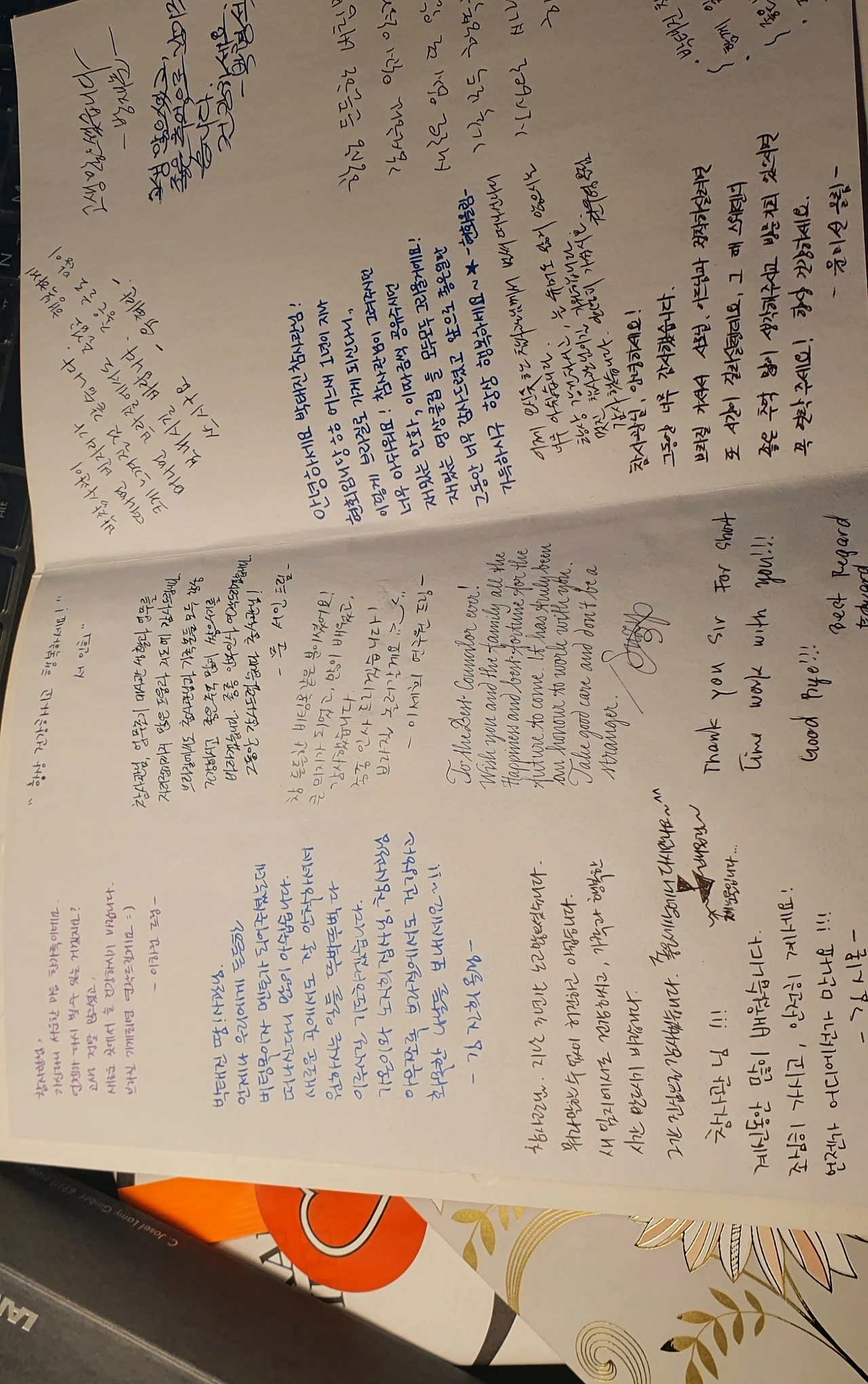 그날 밤 직원들이 건네 준 카드를 펼쳐보았다. 모두가 한 자 한 자 써준 고마운 글들이었다. 그들의 얼굴들이 주마등처럼 지나갔다. 그제야 느낀 것 같았다. 내가 좋은 사람들과 함께 있었구나.