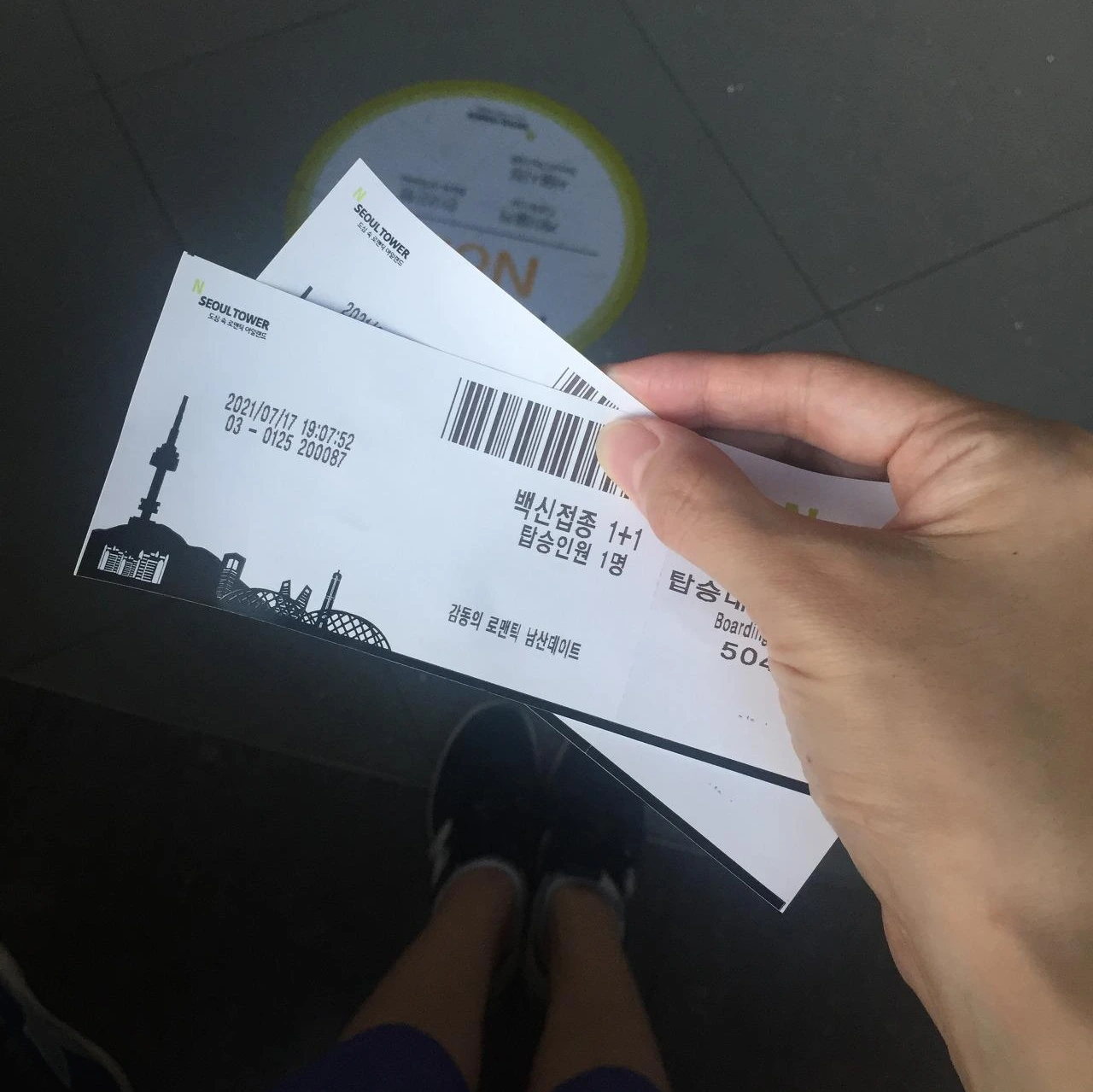 저번 남산 여정 때는 백신 덕분에 몇 년 만에 남산타워에 올랐다. 예방접종 한 사람은 입장권이 1+1이라길래 주저 없이 질병관리청 앱을 다운받았다. 싸게 싸게 받아 든 표에 적힌 <감동의 로맨틱 남산데이트>가 너무 촌스러워서 웃음이 낫다.