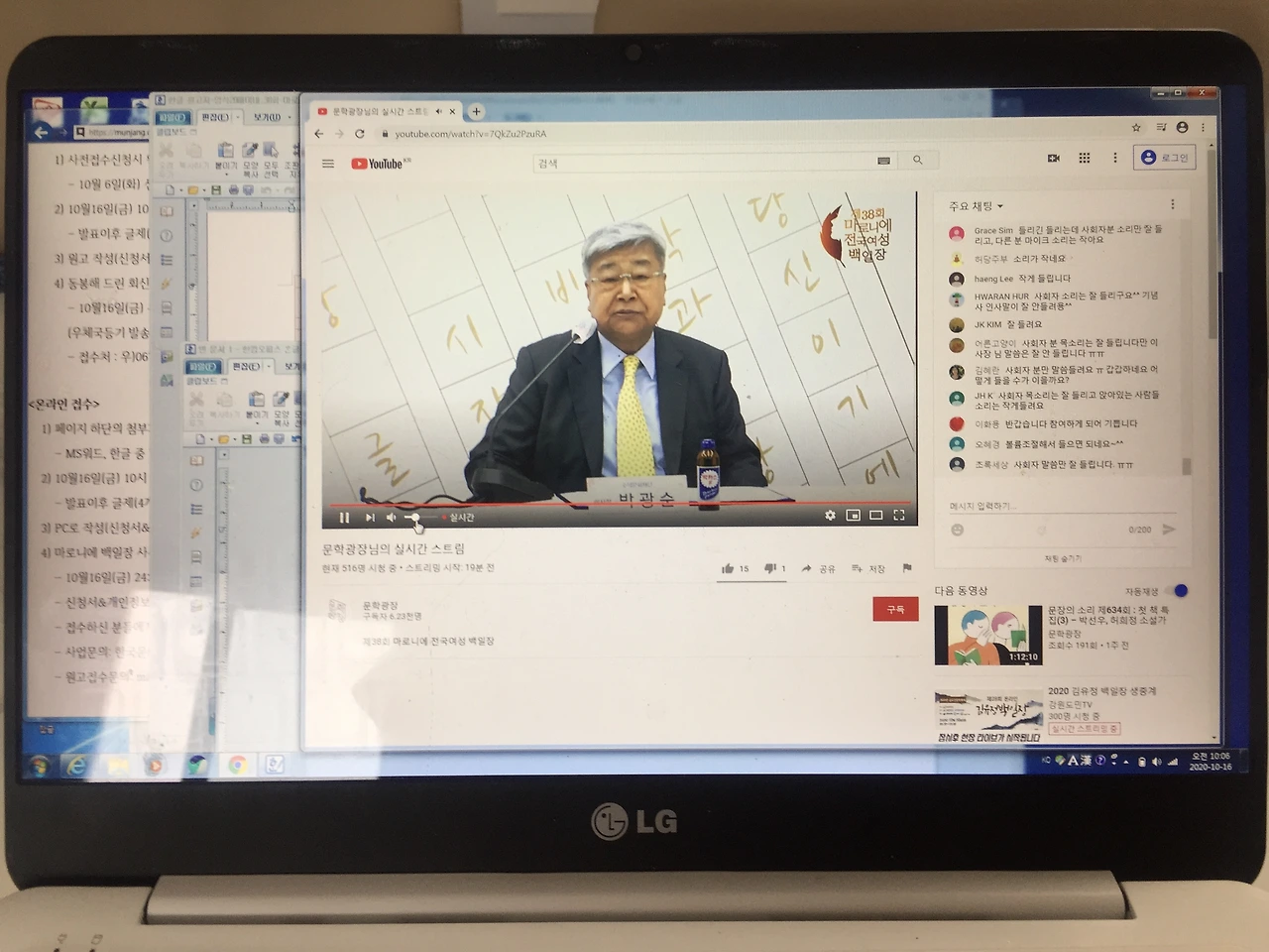 사회자가 개막을 알리고 주최측, 후원측 등등을 한 명 씩 소개하는데, 채팅창에 한 마디 쓰려다가 로그인 하기 귀찮아서 가만히 있었다. 이미 다른 사람들도 언급하고 있었다.