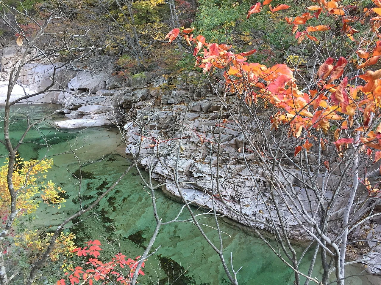 귀면암을 꼴딱 넘어 계곡을 따라 계속 걷자 그제야 진경이 펼쳐졌다. 저 깊은 계곡 아래로는 옥빛 비단 같은 물이 흐르고, 맞은 편 벼랑엔 거짓말처럼 가을빛이 꽂혔다. 가을하늘이 파랗다 못해 너무 멀어서 더욱 거짓말 같았다. 신이 나서 쉬지도 않고 걸었다. 작은 가방 가득 챙겼던 간식에 손도 대지 않고는, 계속 걸었다.