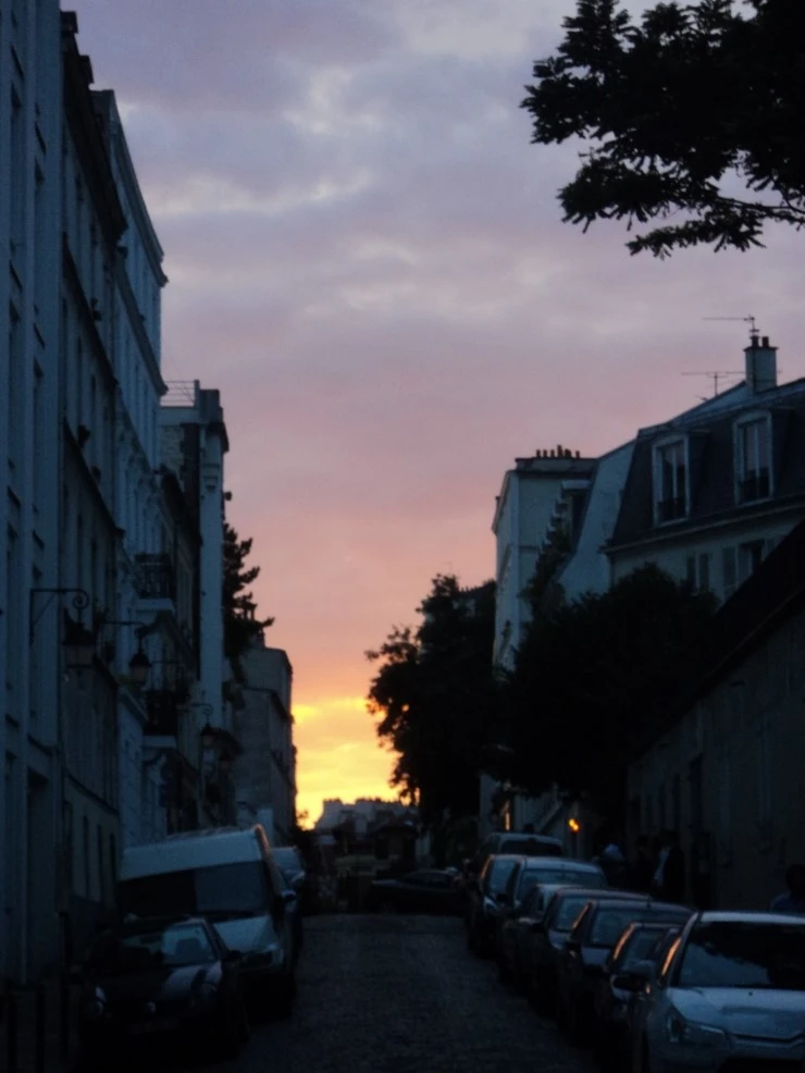 제일 먼저 갔던 곳은 몽마르트르 언덕. 해가 지는 밤, 이제 막 도착한 그와 함께 몽마르트르로 가는 골목을 거닐었다.