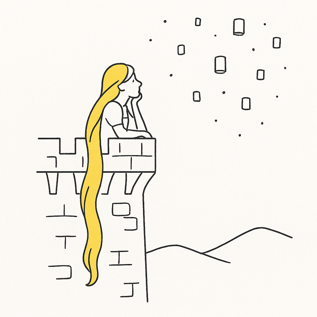 라푼젤은 탑에 갇혀 자라며 세상을 동경한다.