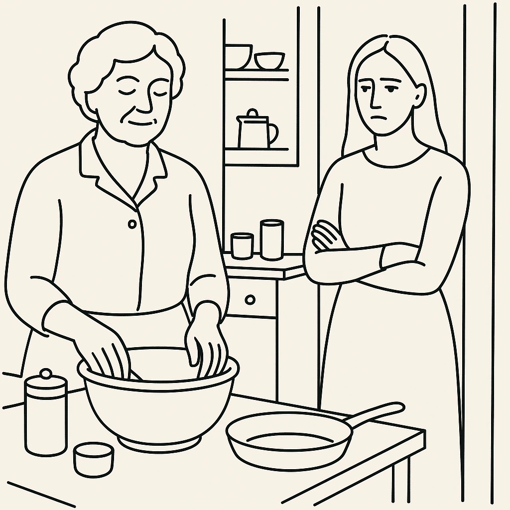 그 불편함을 직접 풀기보다 며느리를 매개로 삼아 조율하려 한다.