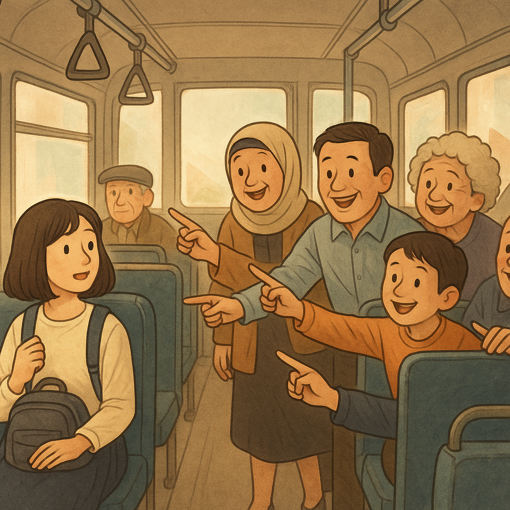 놀랍게도, 그 순간부터 버스 안은 작은 공동체가 되었다.