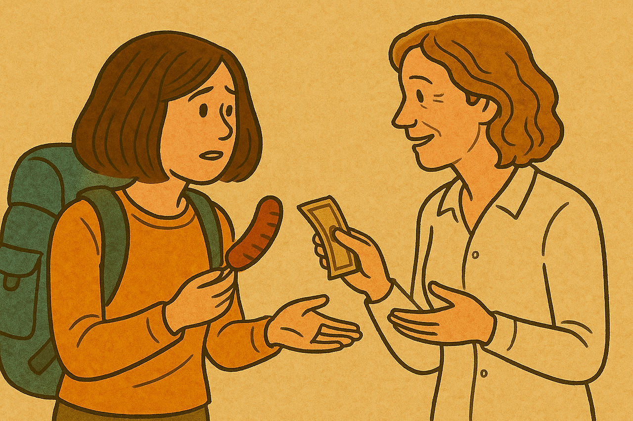 “소시지 맛있게 먹고, 여행 즐겁게 하세요~