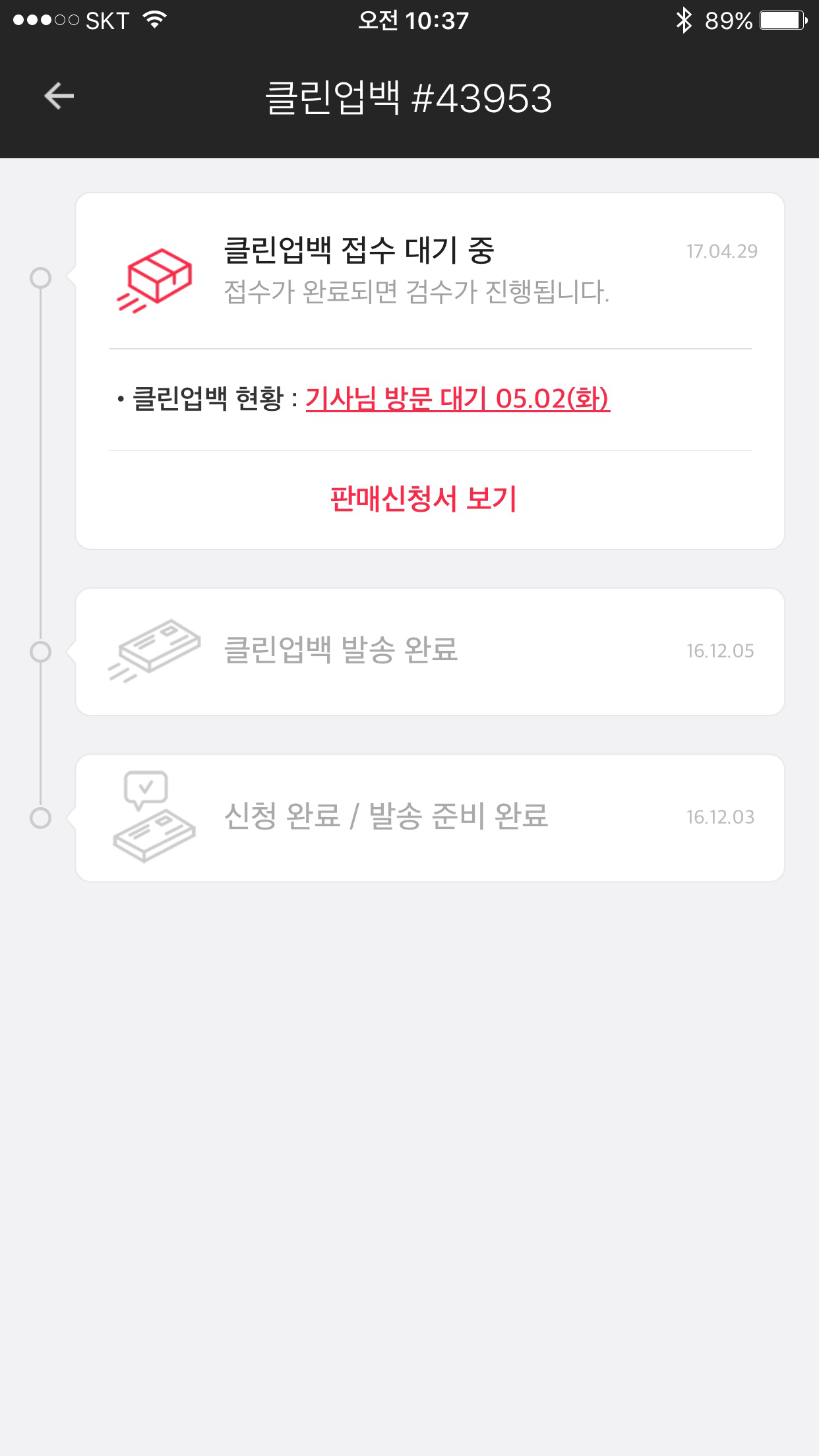 접수가 된 후 2주뒤에 판매금액이 제안되었다고 연락이 왔다. 중간에 5월초의 긴 연휴로 인해 시간이 좀 더 걸린다는 메세지를 한차례 받은적이 있다.