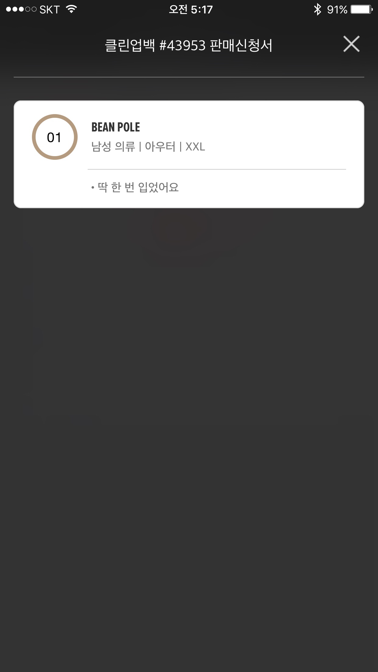 판매 신청소에는 브랜드, 카테고리, 사이즈 및 옷의 상태를 표기하게 되어 있다.