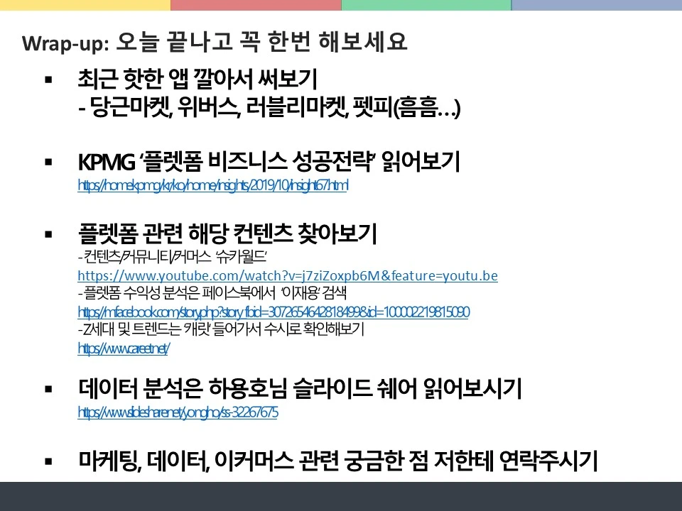 이론뿐만 아니라 실제 플랫폼 비즈니스를 진행했거나 진행하고 있는 사례와 인사이트를 많이 넣어달라고 부탁하셨다. 정리하다 보니 거의 90페이지에 가까운 자료를 작성하게 되었는데 여기에는 요약 버전을 올린다.