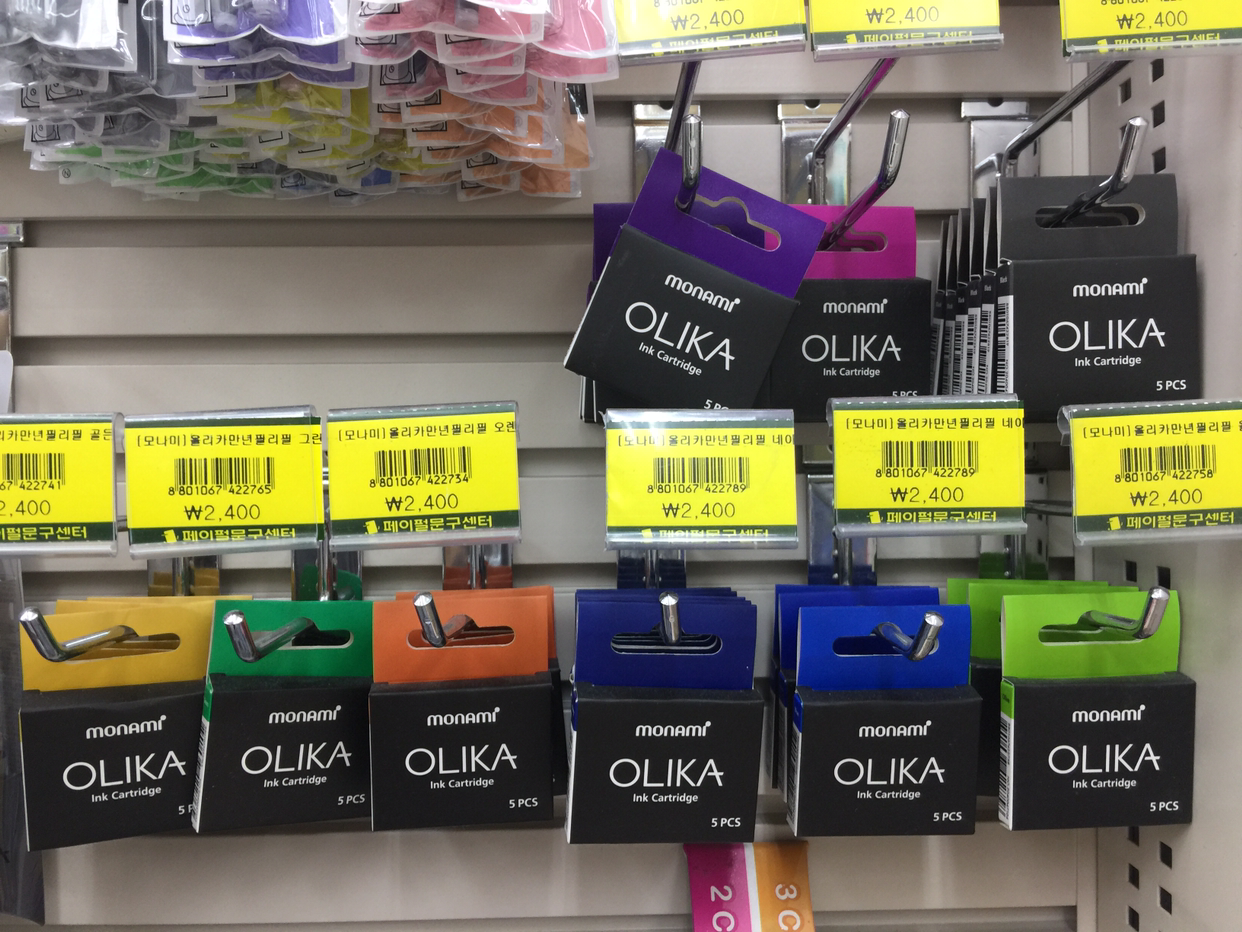 몇주전 부터 문구점 필기구 영역 옆에 생에 첫 만년필이라는 제목으로 엔트리급 만년필이 있는 걸 알게 되었다. 일본 브랜드 제품도 몇개 보였고, 한국 브랜드는 모나미가 전시되어 있었다. 가장 내 눈을 사로 잡았던건 가격! 대부분의 제품들이 3천원(정확히) 이하에 형성되어 있었다. 3천원이면 보급형 펜보다 살짝 비싼 가격이긴 하지만, 만년필로는 말도안되는 가격이 아닌가? 게다가 이 펜들이 대부분 리필 잉크까지 별도로 구매할 수 있어서 한번 쓰고 버릴 필요가 없었다.(펜텔 Tradio 리필의 가격을 생각해보면...ㄷㄷ)