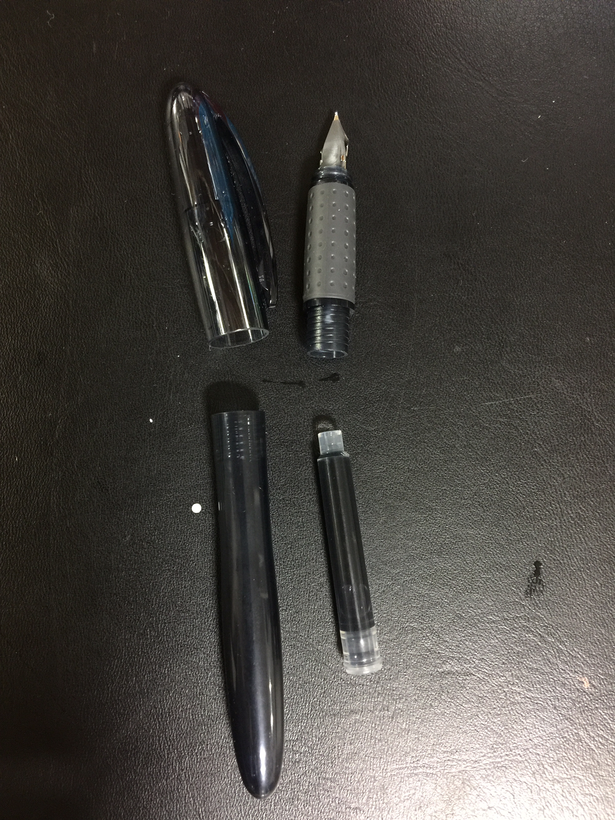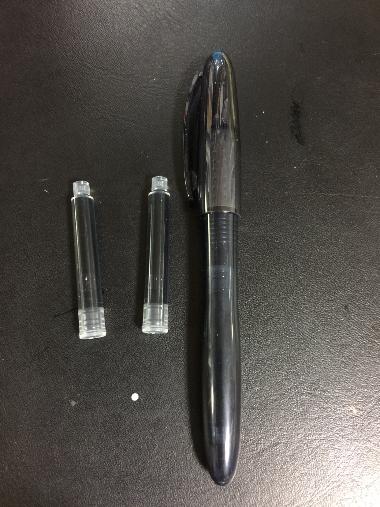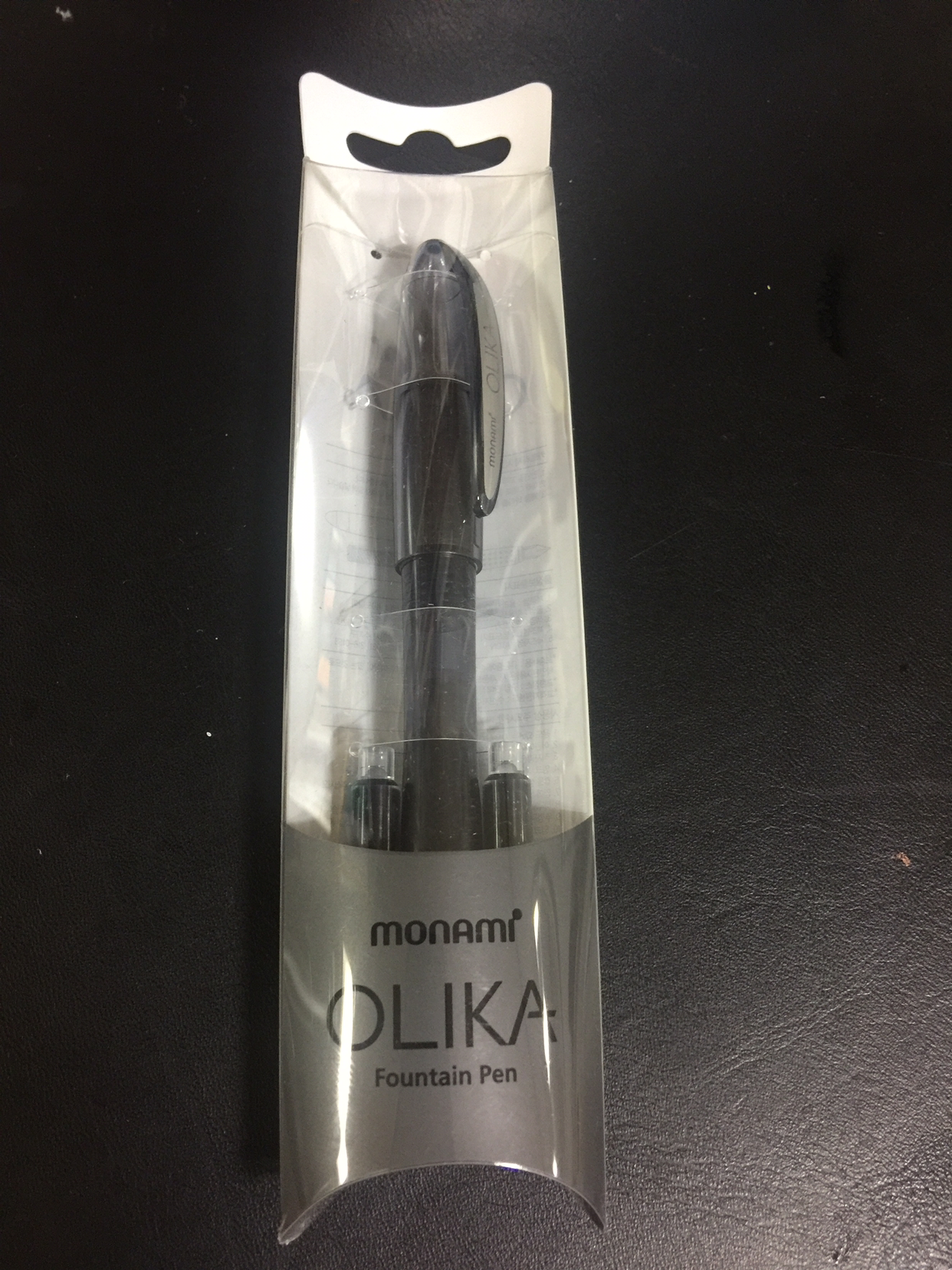 결국 모나미 OLIKA 검정색을 하나 구입했다. 투명 아크릴로 되어 있는 케이스에 카트리지가 두개 들어있다. 처음에 잉크가 들어가있지 않으므로 간단한 조립 과정은 필요하다.