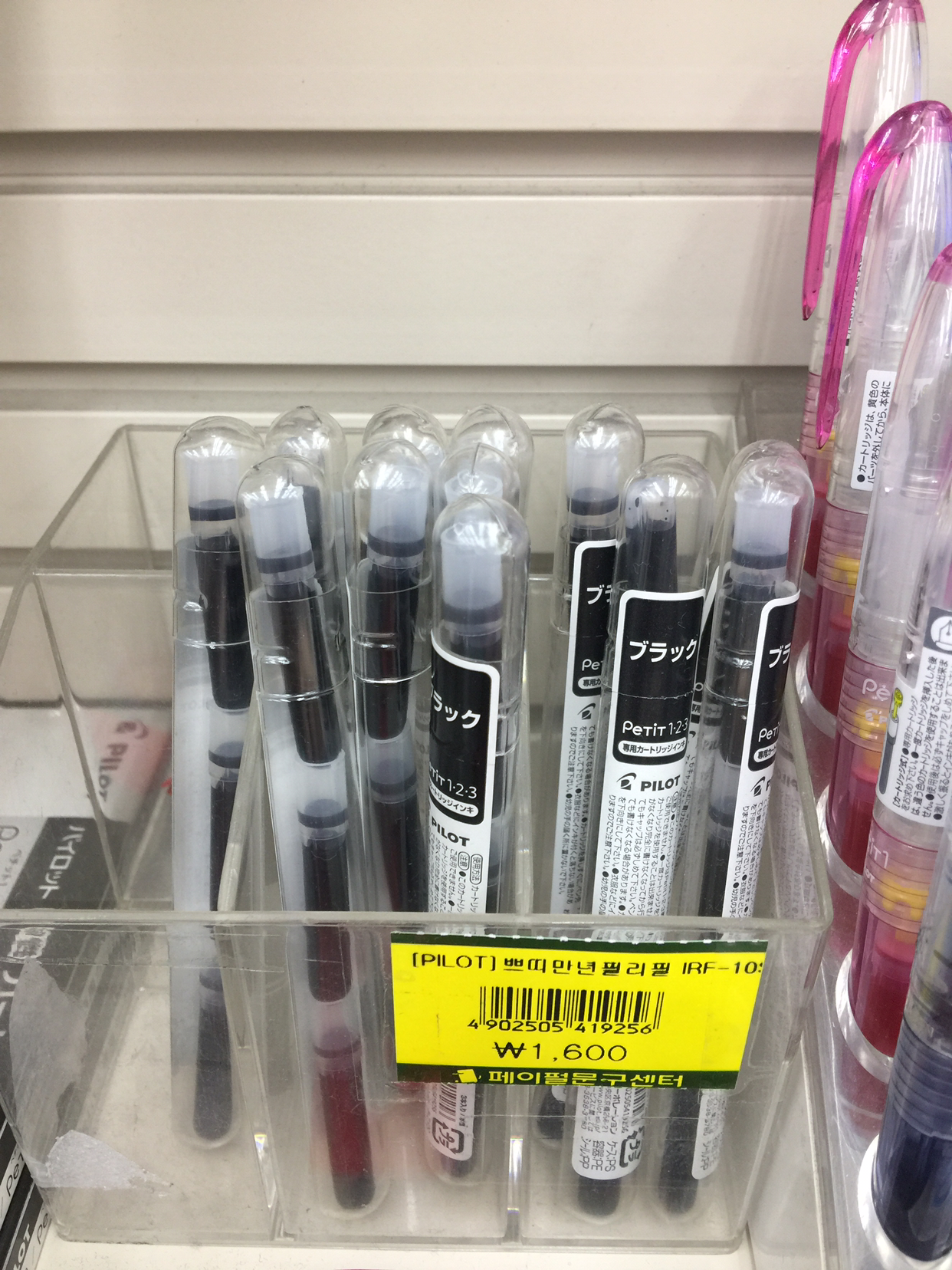 │Pilot: '쁘띠 만년필' - 가격 3천원, 기본 검정, 파랑, 빨간색 外 보라색, 연두색 등 특이한 색상도 판매