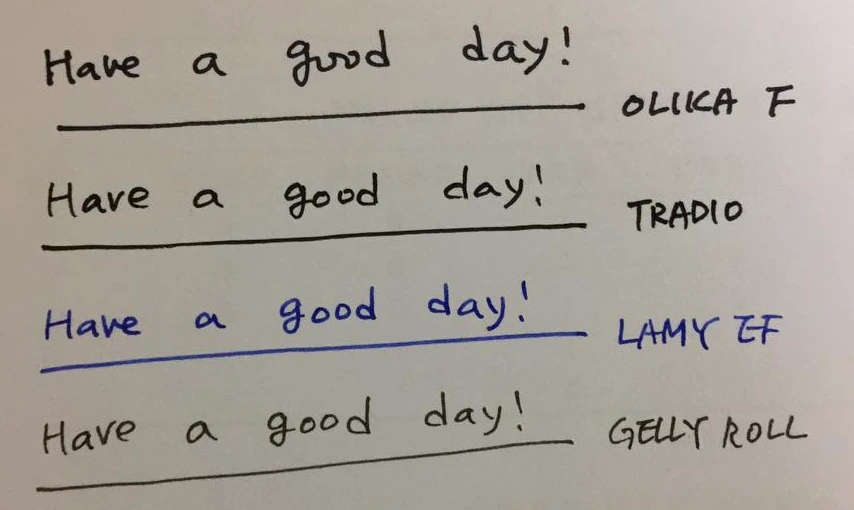 글씨를 써봤다. 처음 쓰는 필기감은 무척 부드럽다는 것, 글씨가 술술 써진다는 느낌이었다. OLIKA보다 비싼 펜텔 TRADIO를 쓰는 느낌과 비교하면 부드러움의 차이는 극명하다. 다만 만년필을 F촉이 아닌 EF촉을 선화하는지라 펜 글씨가 굵었다. 그리고 좀 더 얇은 종이에서는 빠르게 쓰지 않으면 약간의 번짐도 볼 수 있었다.