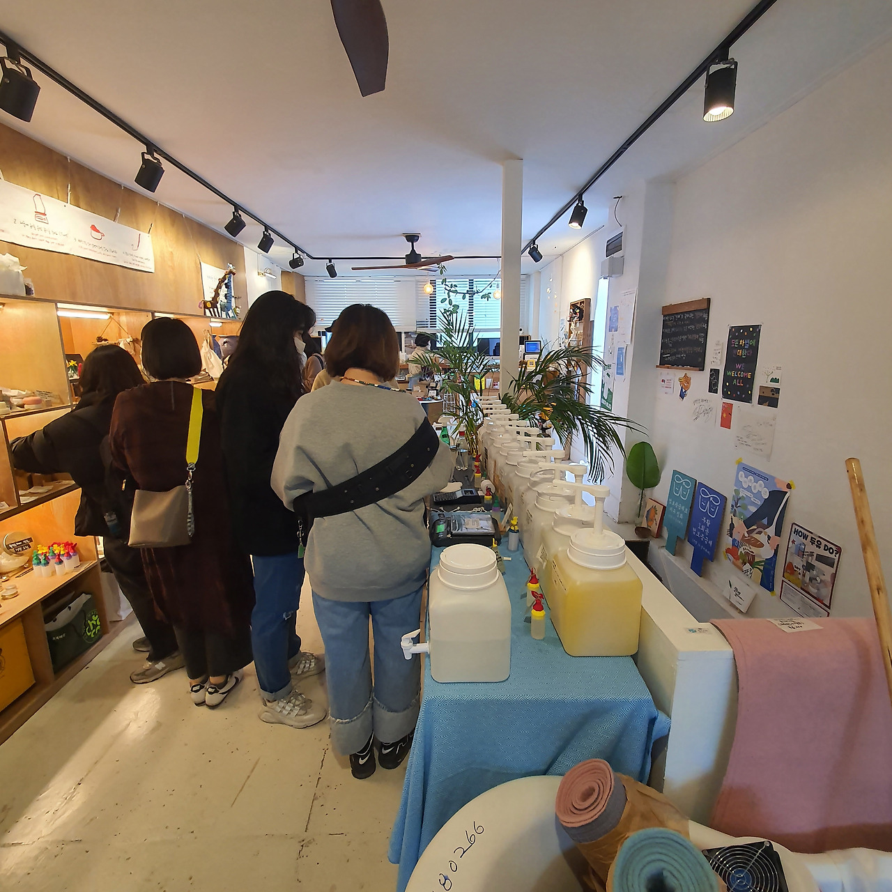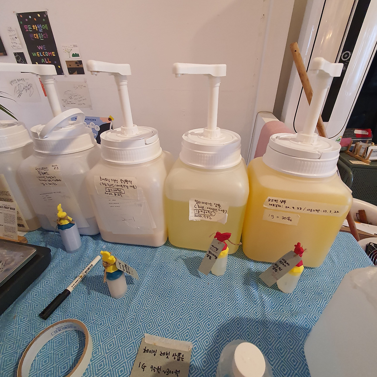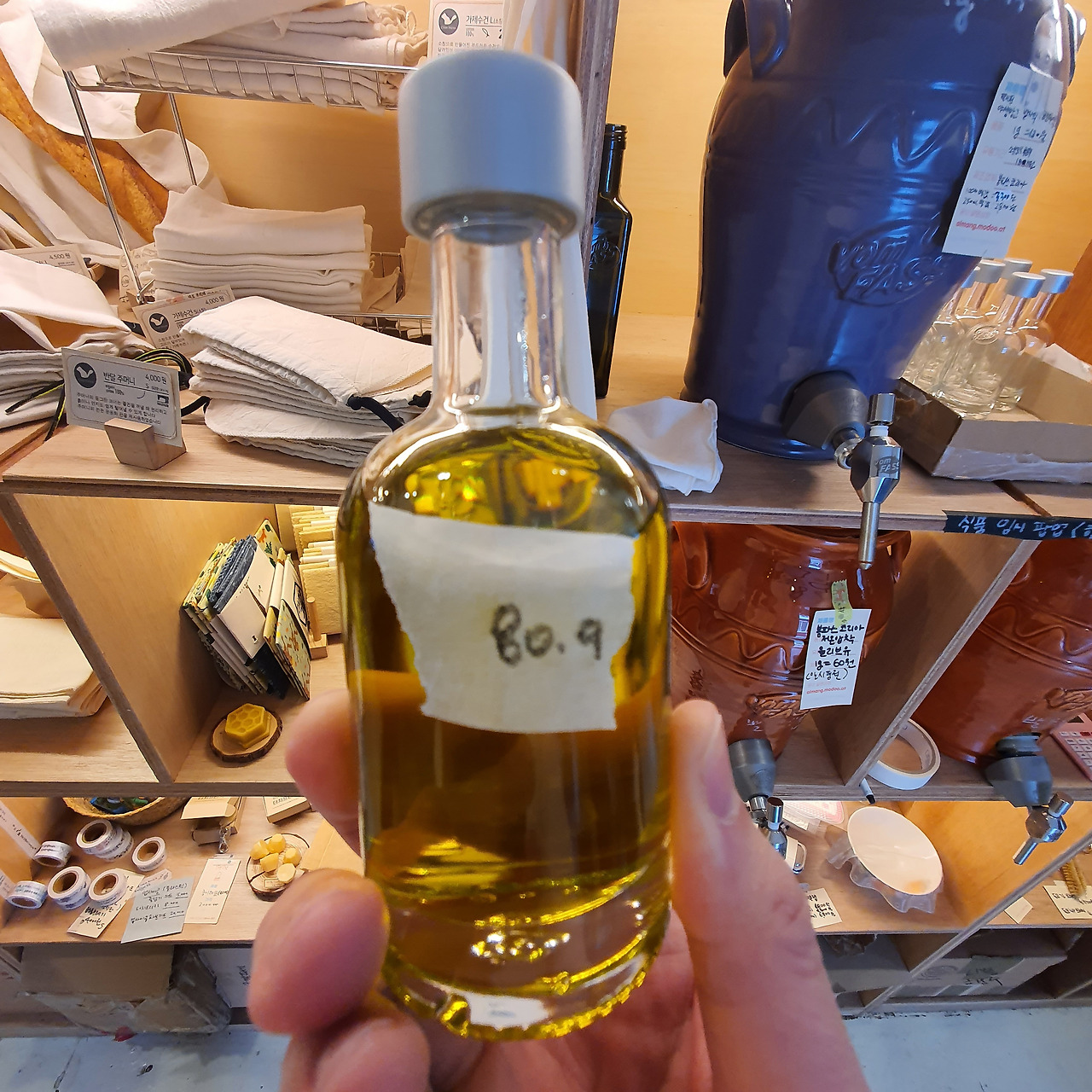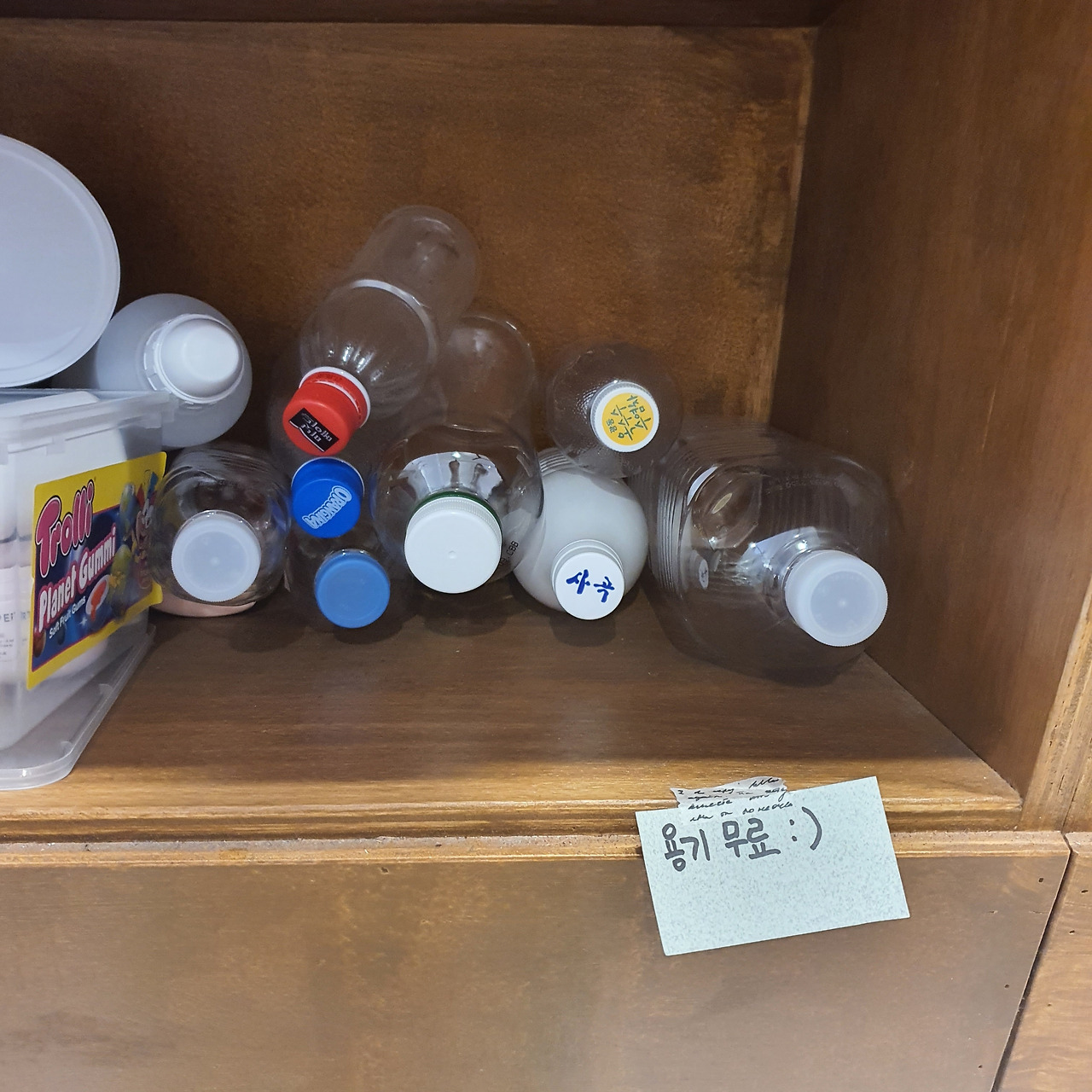 오일 같은 경우는 작은 유리병을 구매해서 오일을 담을 수 있었다. 세제는 1회 용기가 무료로 비치되어 있어서 편리하게 구매할 수 있다.