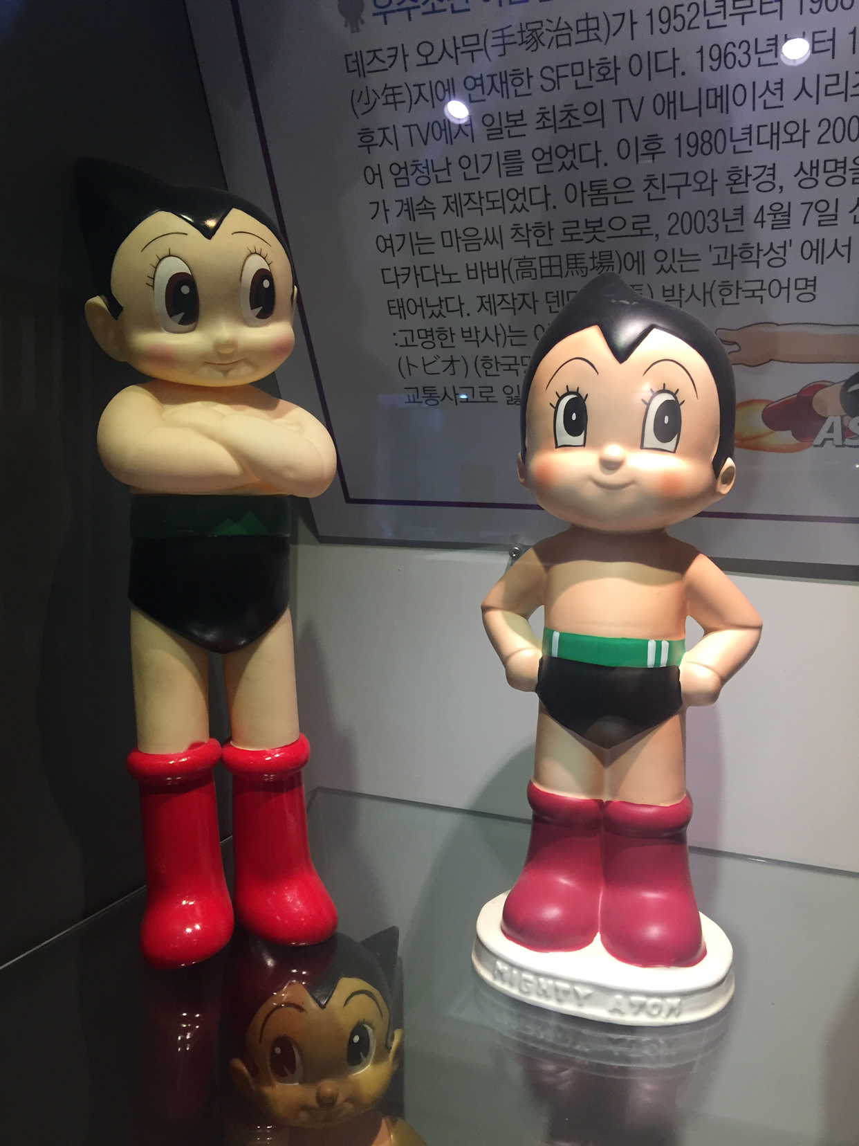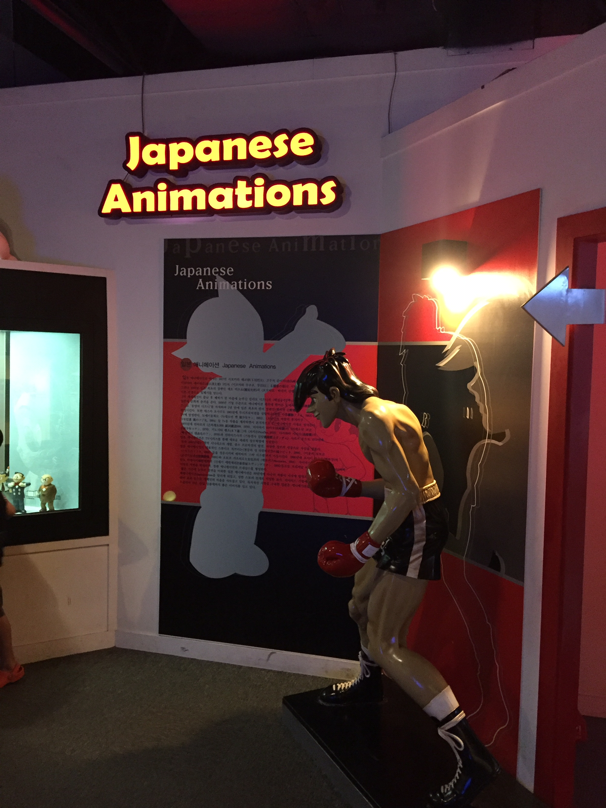 오히려 일본 애니메이션관 부터 익숙한 캐릭터를 볼 수 있었다. 아톰, 은하철도999 등 추억의 캐릭터에 잠시 옛기억을 더듬어 본다. 처음에 아톰 캐릭터에는 날아가는 장화가 없었는데, 빨간 장화를 장착하면서 하늘을 나는 지금의 캐릭터가 되었던 에피소드도 생각났다. 그리고 은하철도999의 섬찟한 결말을 유튜브에 올려놔서 한참 후덜덜하며 보기도 했었다.(매우 심오한 만화였다)