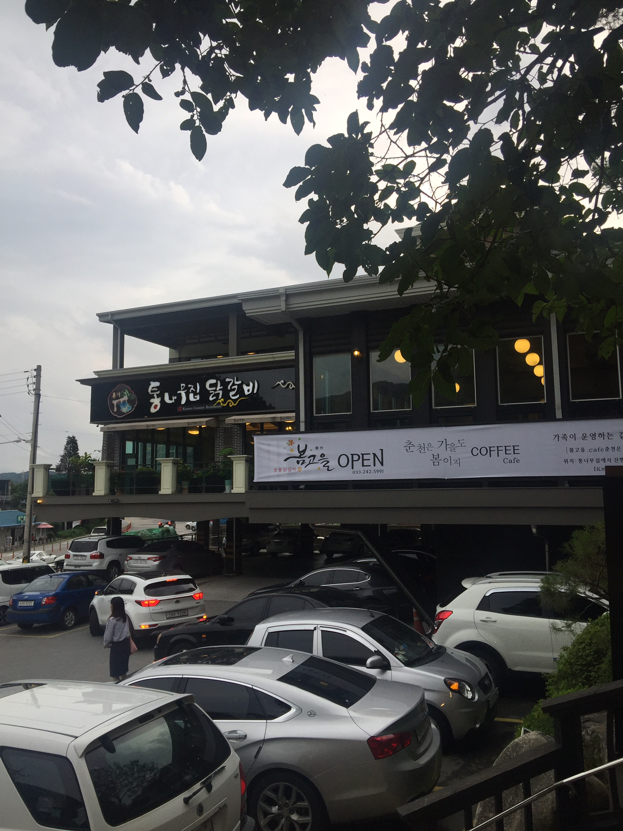 이렇게 구경을 마치고 저녁식사를 하러 닭갈비 집으로 향했다. 알쓸신잡에 나온 집은 아니지만 예전부터 유명했고 와이프가 대학교때 와봤다고 하는 '통나무집 닭갈비'를 갔다. 찾아가는 길에 2호점이 있을만큼 성업중인 식당인 것 같았다. 넓은 주차장이 꽉 차있었고, 들어가자마자 번호표를 뽑아주긴 했지만 생각보다 회전율이 빨라 많은 시간을 기다리진 않았다. 저녁식사시간대인 6시 30분에 도착했는데 10~15분 정도 기다렸더니 자리가 났다. 구글 지도를 검색해보니 2~3시가 가장 Peak 시간이고, 6~7시가 두번째 Peak 시간이라고 하니 나머지 시간에는 대기가 그렇게 많아보이진 않았다.