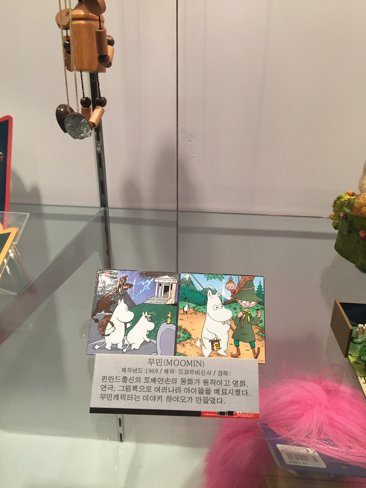 유럽관에는 스머프와 무민이 전시되어 있었다. 스머프와 무민 모두 미국에서 만든 캐릭터라고 생각했는데 스머프는 벨기에, 무민은 핀란드 캐릭터였다. 스머프라는 이름이 미국식 이름이 아닌걸 이제서야 새삼 깨달았다.그리고 무민 캐릭터가 69년에 만들어졌다고 하는데 요즘봐도 촌스럽지 않을 정도니 참 잘만든 캐릭터라는 생각이 새삼 들었다.