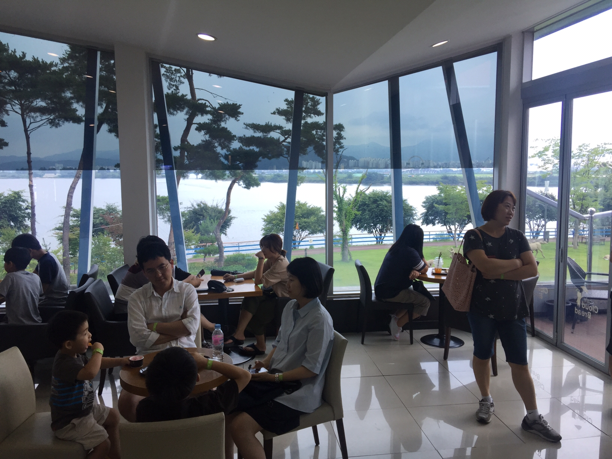 그렇게 구경을 하고 까페에 잠시 들러 쉬는 시간을 가졌다. 바깥에 빛도 잘 들어오고 소양호도 바로 보이는 멋진 View를 갖고 있었다. 아이스크림을 먹으며 쉬는 시간을 가졌는데 아이스크림도 맛있었다!