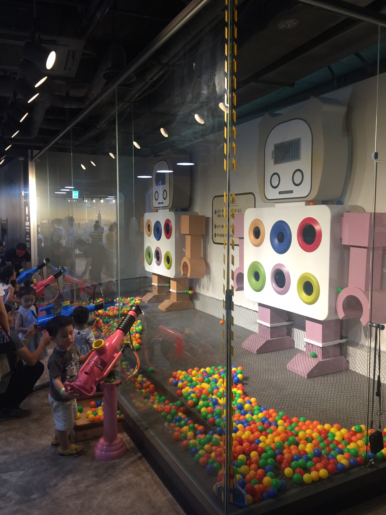 곳곳에 체험할 수 있는 시설이 많았다. 로봇 축구를 해볼수도 있고 로봇에게(?) 대포를 쏠 수 있는 곳도 있었다. 주말임에도 불구하고 사람들이 그렇게 많지 않았고, 한번씩 돌아가면서 할 수 있어서 원하면 직접 체험해볼 수 있는 전시장이었다.