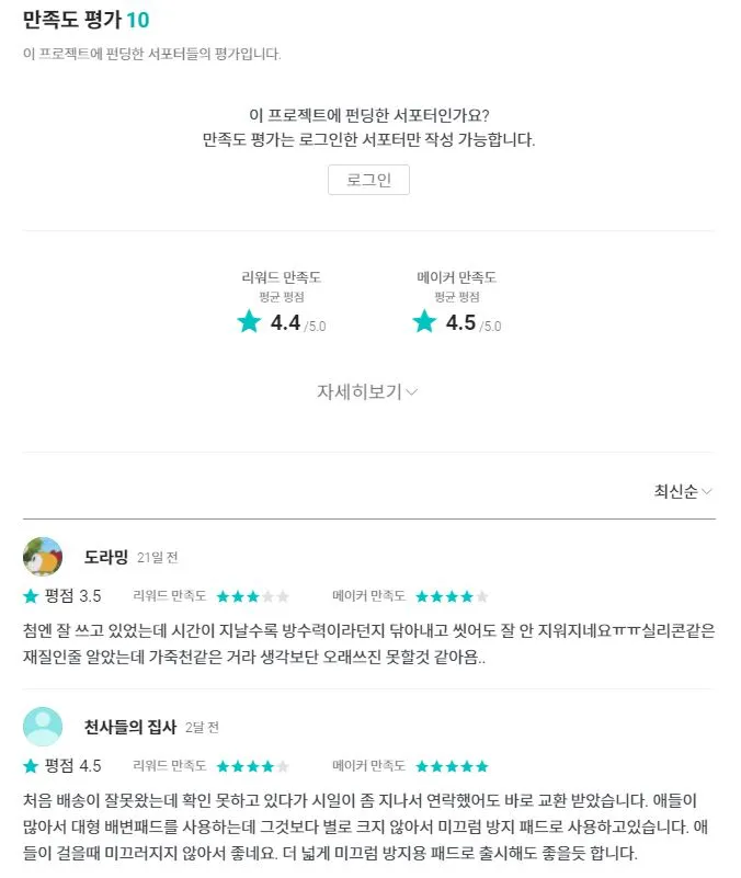 펀딩이 끝났는데도 끝난 게 아니었다. 포털 사이트에서 검색하면 해당 프로젝트가 검색 결과에 나오고 있어서 제품 홈페이지가 하나 생긴다. 프로젝트 기간뿐만 아니라 지금도 가끔씩 페이지를 방문해서 고객님들의 피드백을 읽어보고 있다. 최근까지도 사용 후기를 남겨주시는 분이 계신데 이런 피드백을 놓치지 말아야 한다.