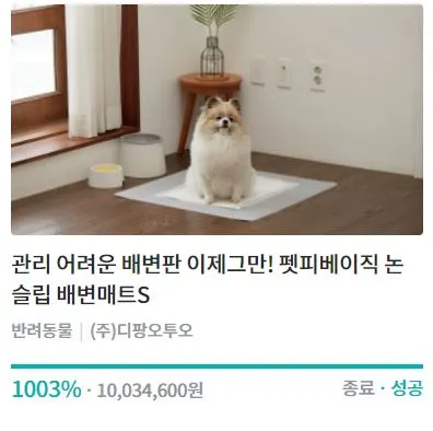 와디즈 PD님께서 펫피 앱 사용자셨다. 강아지 키우면서 앱이 너무 좋았는데 보다 보니 쇼핑 탭도 있고 PB상품도 판매하고 있길래 신제품이 나오면 꼭 와디즈 프로젝트를 한번 진행해보고 싶다고 했다. 그렇게 시작했던 인연인데 기존에 팔던 강아지용 배변 매트를 실리콘 코팅으로 업그레이드 한 제품을 같이 프로젝트로 진행하게 되었다.