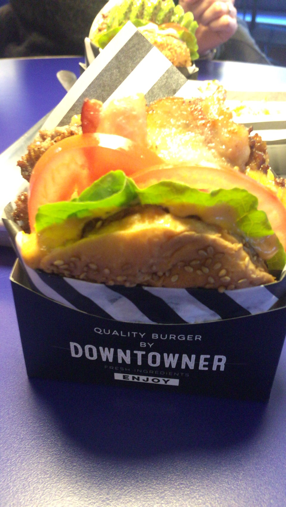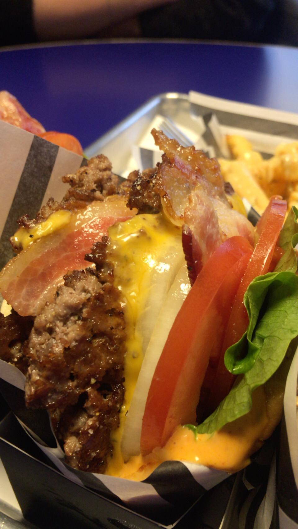 그리고 더블베이컨은 패티가 2개 들어있다보니 두께가 더 두꺼웠다. 한입 베어 먹으니 입안에 패티의 육즙이 입안에 퍼져 나갔다. 굽기도 적절하고 패티의 밀도도 적절해서 한번에 많은 양을 베어먹을 필요 없이 천천이 맛을 음미할 수 있었다. 더블패티가 인상적인 맛이어서 그런지 베이컨의 향과 느낌은 그렇게 크게 느껴지지 않았다.