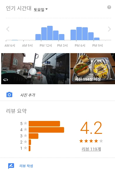 구글 지도를 검색해보니 토~일요일에는 12~3시, 5시~7시까지 계속 인기시간대라고 한다. 오전 11시나 오후 2시, 또는 저녁 8시에 방문하면 기다리는 시간이 더 짧을 것 같다.