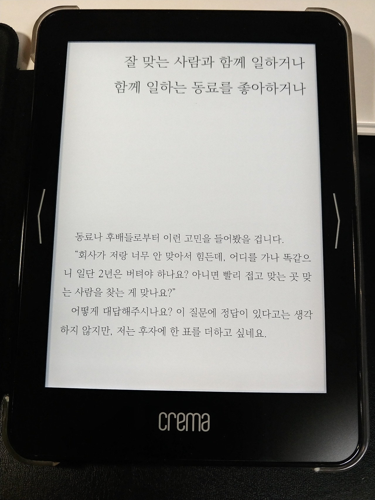 눈에도 편하고 종이책을 읽는 느낌을 줘서 가독성과 피로도가 훨씬 좋다고 한 사용 평이 많았다.