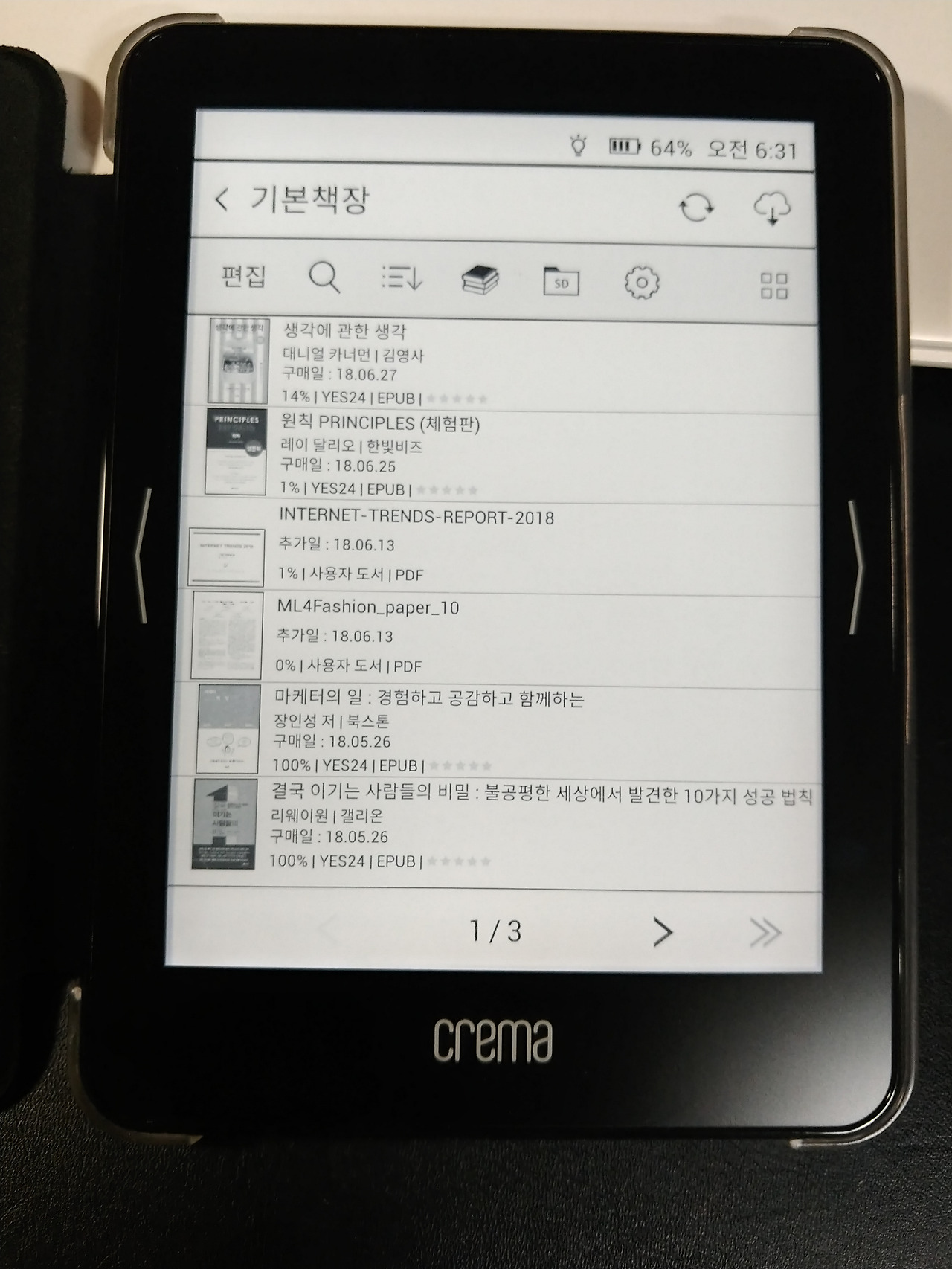 평소 예스 24에서 책을 많이 구매하다 보니 아무래도 리디북스 보다는 크레마가 책을 구매하고 이용하기가 편리해 보였다.