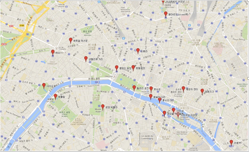 *실제: 계획지역 + 성사펠성당, 꽃시장, 피카소 박물관, 판테온, 셰익스피어 서점, 알렉상드르 3세 다리, 사이요 궁, 라페에뜨 백화점