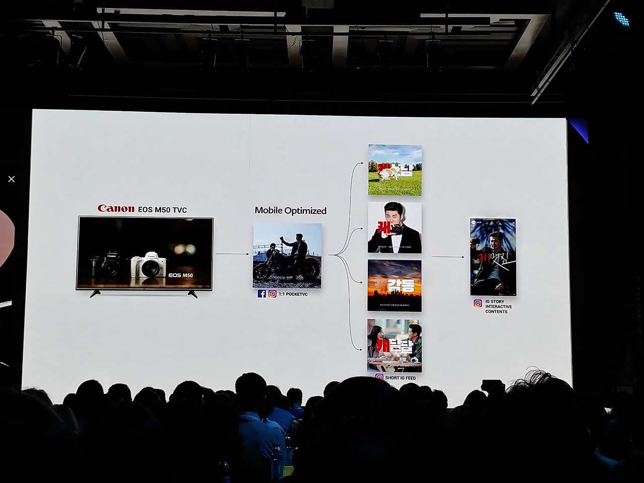 주로 페이스북/인스타에 진행되었던 캠페인의 실사례를 설명했다. 유튜브와는 달리 페북과 인스타를 위한 정사각형의 컨텐츠를 재생산한다거나, 혹은 세로형으로 별도 캠페인을 만들었던 사례가 소개되었다.(캐논, 8 Seconds, 스프라이트, 고티카 사례)