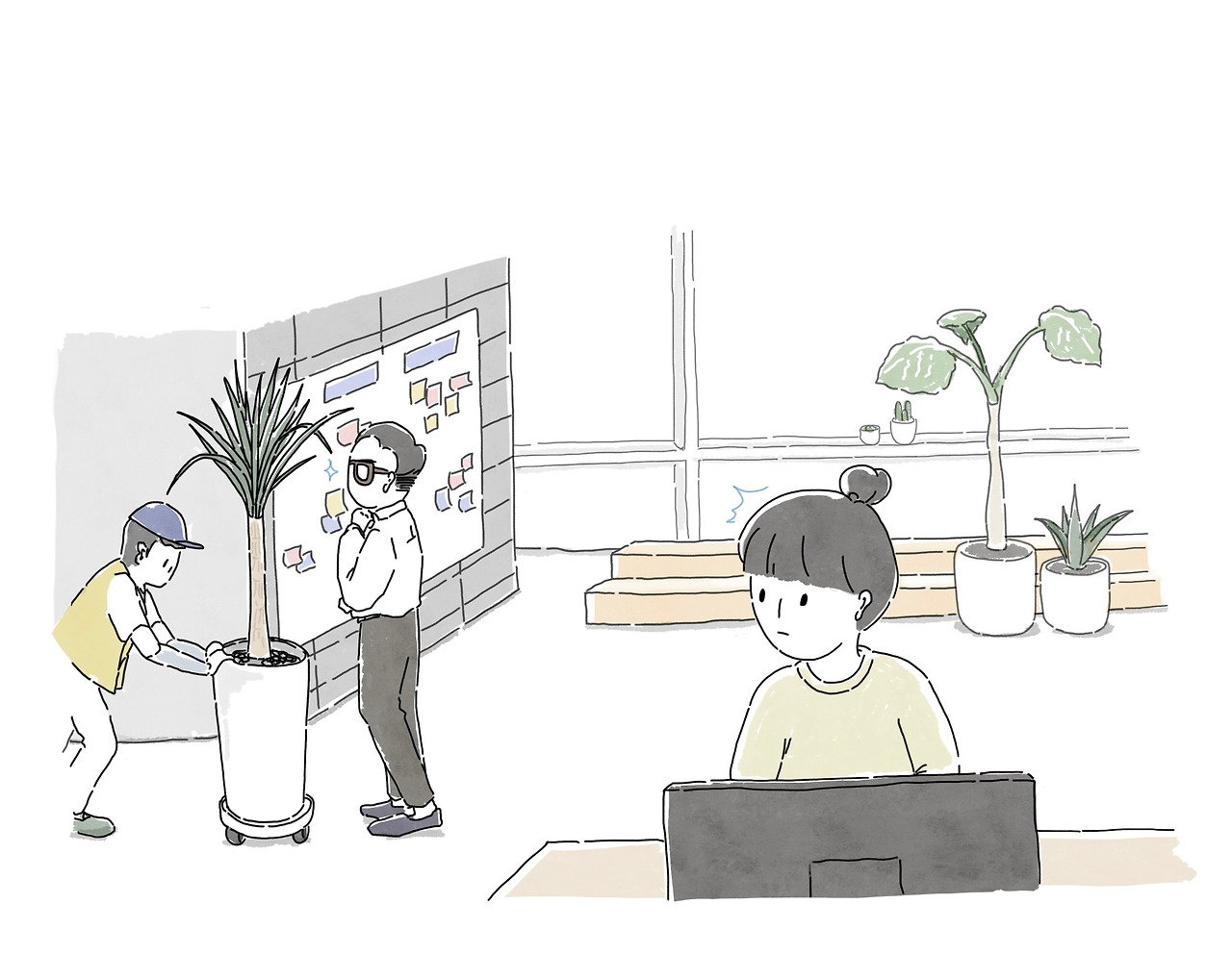 화장실이나 회의실을 지나칠 때면 우리는 늘 어색한 눈인사를 나눴다. 그리고 다음 달이 되면 더 큰 신입이 들어왔고, 그렇게 수십 개의 화분들이 우리 사무실 공간을 채워나갔다.