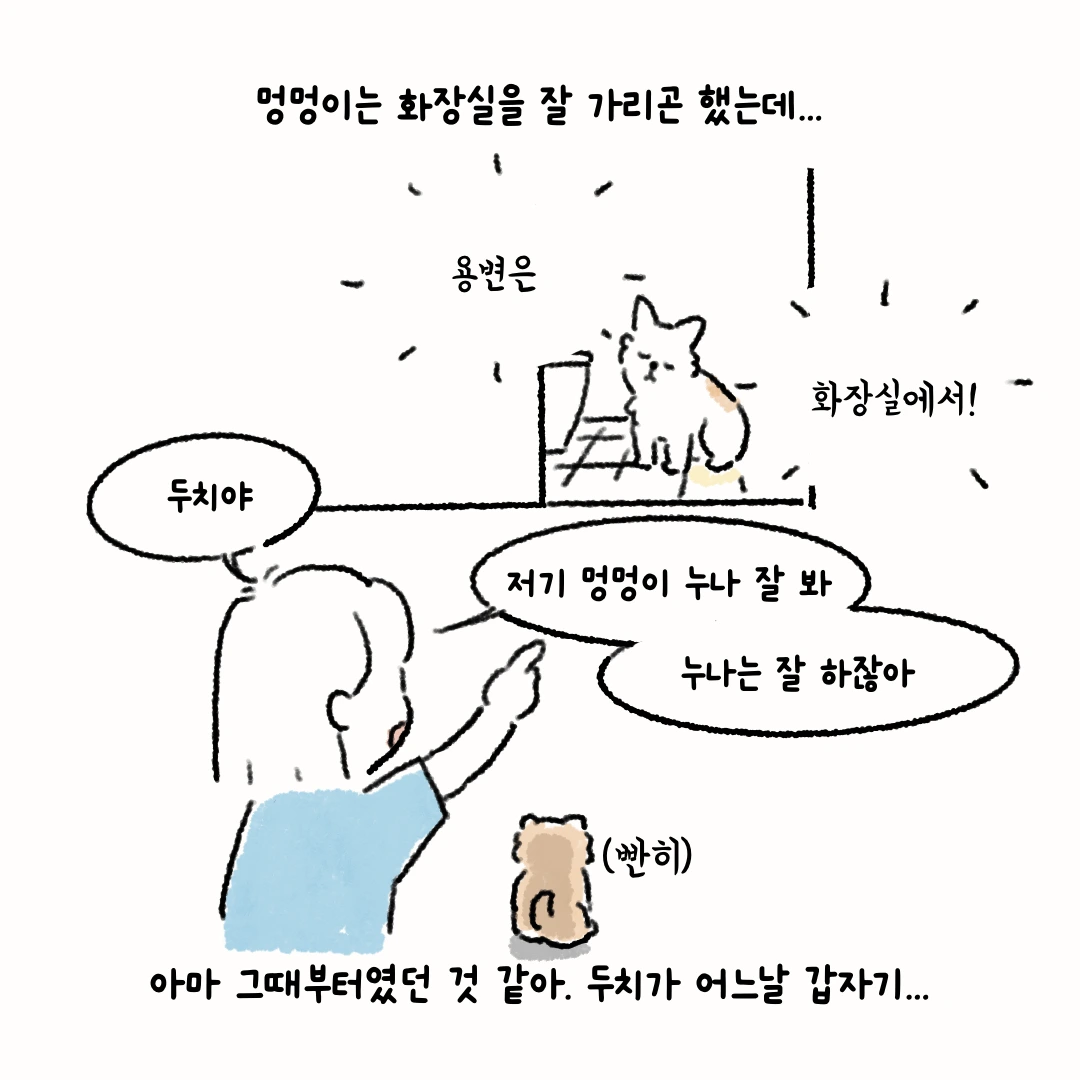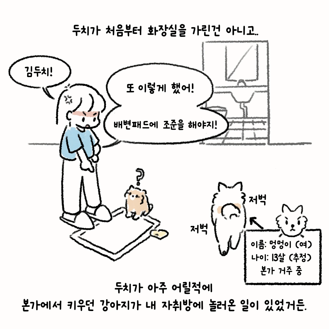 본가에서 키우던 멍멍이의 배변 습관을 그대로 따라 하는 두치..!