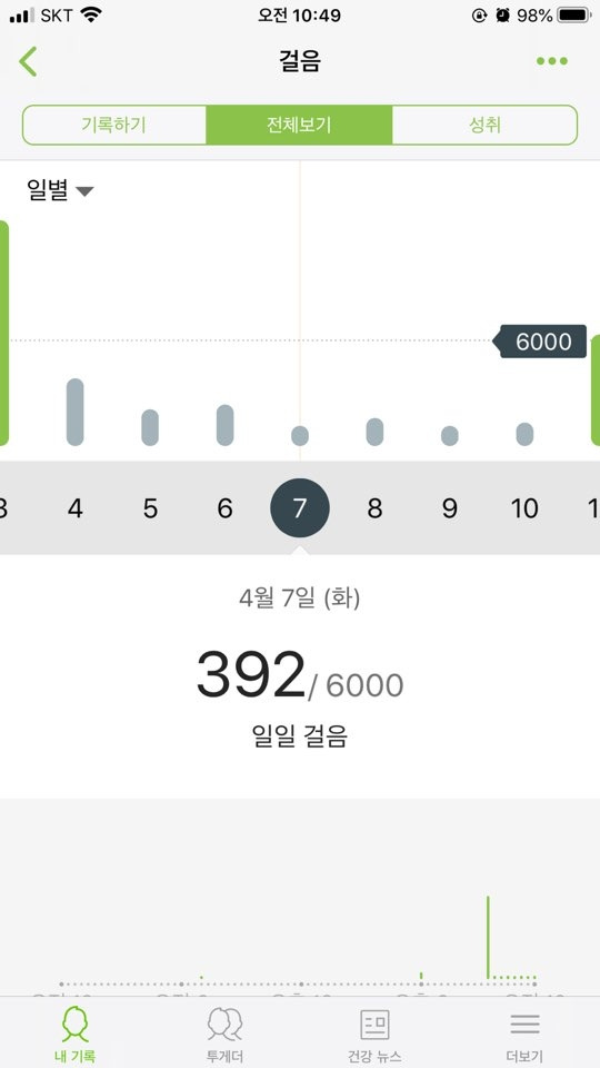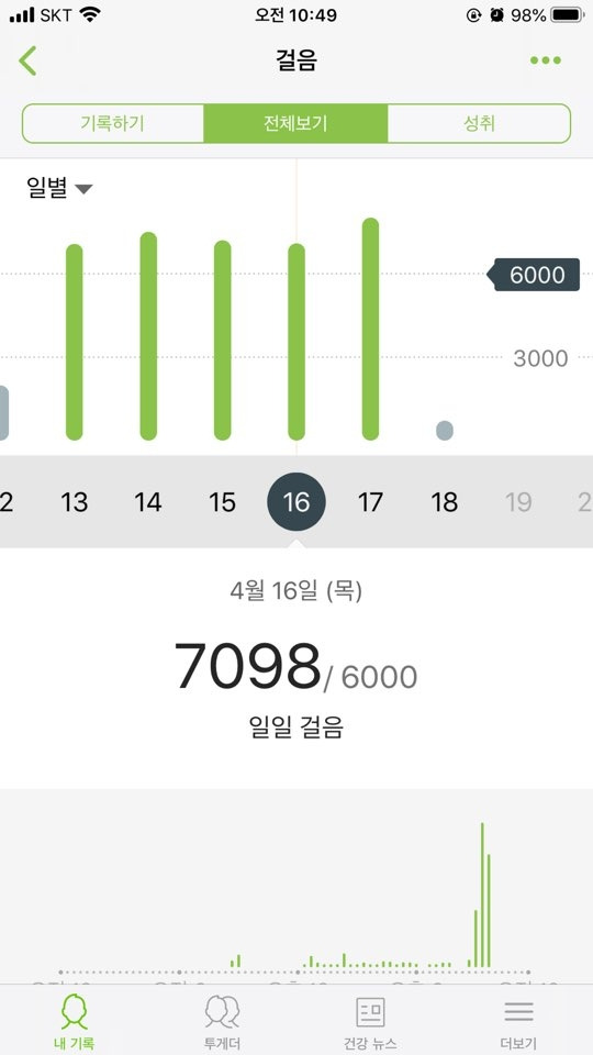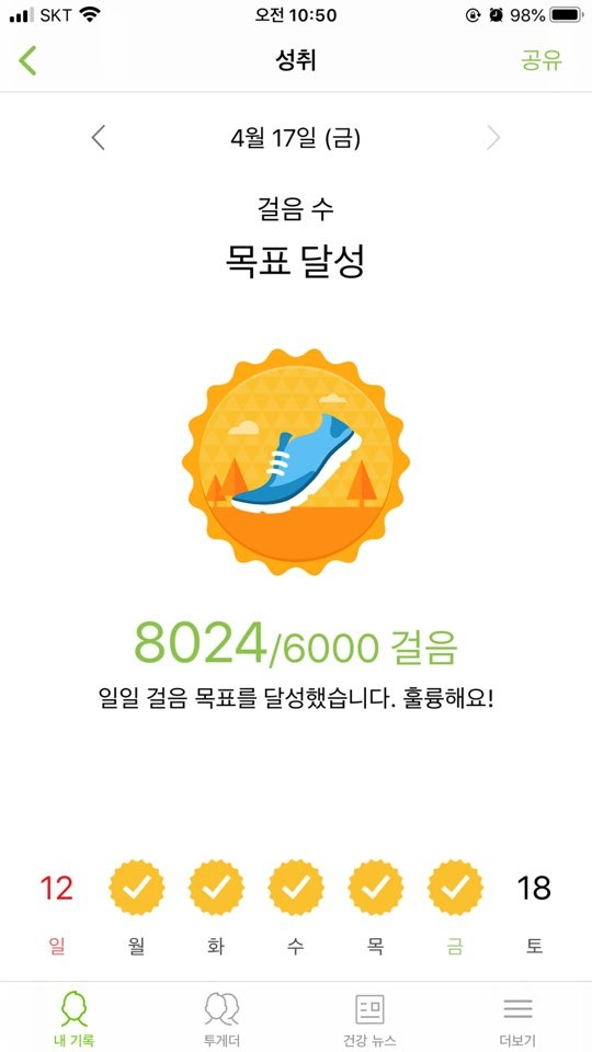그렇게 멤버들이 의기투합하여 매일매일 단톡에 하루 걸음을 인증하기로 했다.