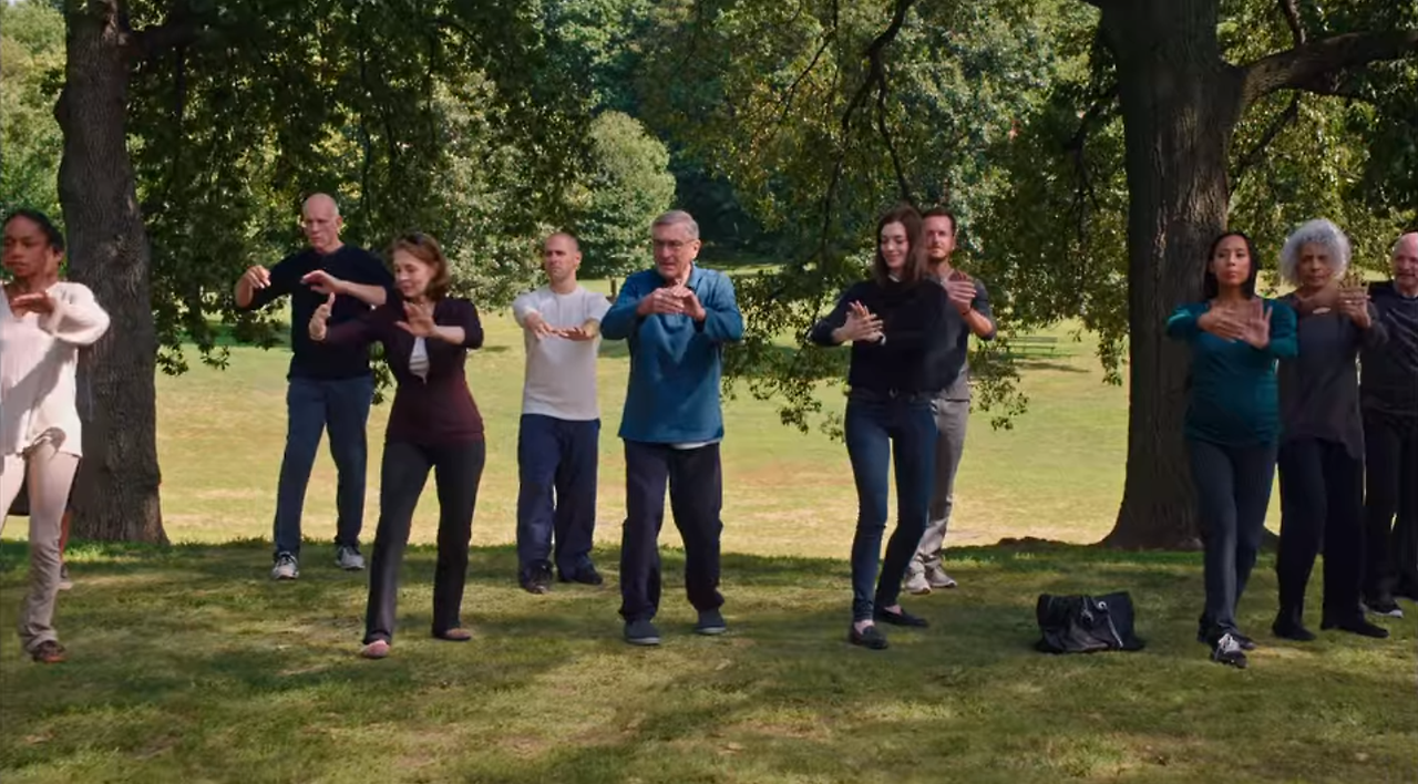 영화 <인턴>의 마지막 장면에는 벤 휘태커(로버트 드니로)와 줄스 오스틴(앤 해서웨이)이 사람들 틈에 섞여 함께 운동을 하는 장면이 나온다.
