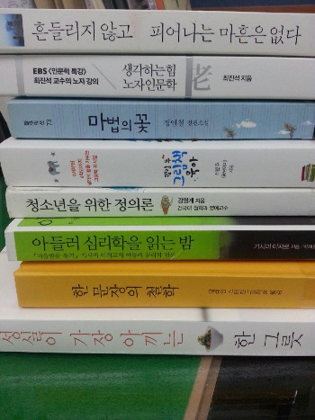 이 습관이 언제부터 생긴 습관일까? 생각해보면 그것은 내가 교사가 되면서부터인 것 같다. 임용고시를 준비할 때는 책을 많이 읽기는 하였으나, 그것은 시험을 위한 독서였다. 나의 성장을 위하여 나 스스로 책을 찾아 읽은 것은 교사가 되면서부터 학교 도서관에서 10권씩 책을 빌려 학교 책상에 올려두고 처음에는 제목을 보고, 목차만 보고 돌려주더라도 도서관에 가면 참 좋았다. 그 책 냄새를 맡는 것이 좋았던 것 같다. 그렇게 세월이 흐르니 나의 손에는 늘 책이 있었다.